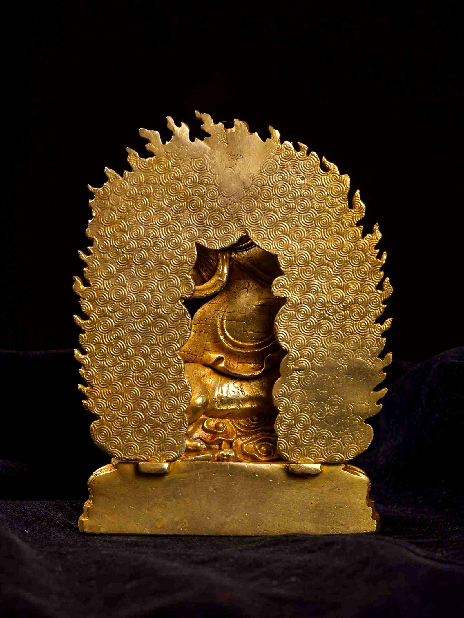 He then dwelled in the cemetery known as the Pile of the Worlds, turning the Wheel of the Dharma for the dakinis for five years. At the end of this time, he received the name Guru Dorje Drolo, a wisdom form, an expression of the rainbow body emanated in the final days before Padmasambhava's departure from Tibet. Dorje Drolo made many prophecies and multiplied sacred teachings through his meditative powers, securing the commitment of local spirits to extend their protection across generations. Dorje Drolo is the Buddha oriented towards the welfare of practitioners in the future - our present degenerate age.