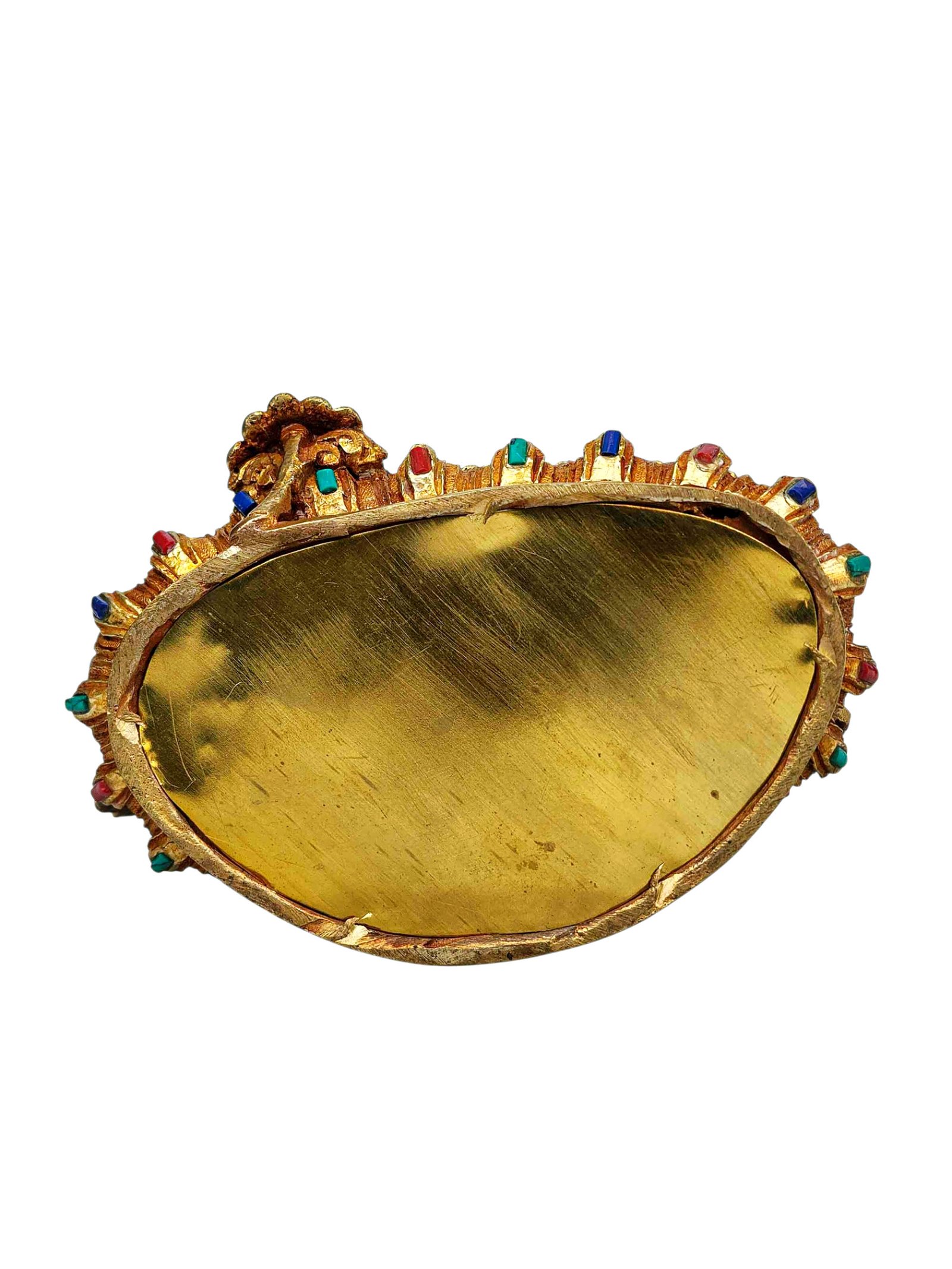 This Yellow Jambhala is finished with full gold plating. also known as mercury gold plating or fire gold plating. This traditional technique involves the application of a genuine layer of gold onto the Yellow Jambhala. Referred to as mercury gold plating, it is considered the correct and authentic form of gold plating in Nepal. Despite being more expensive than electroplating, this traditional mercury gold plating is gaining popularity again in Nepal. People are drawn to its authenticity, longevity, and the unmatched beauty it brings to the Yellow Jambhala. The resurgence of interest in this traditional form of gold plating reflects a growing appreciation for the craftsmanship and cultural heritage of Nepal Read More