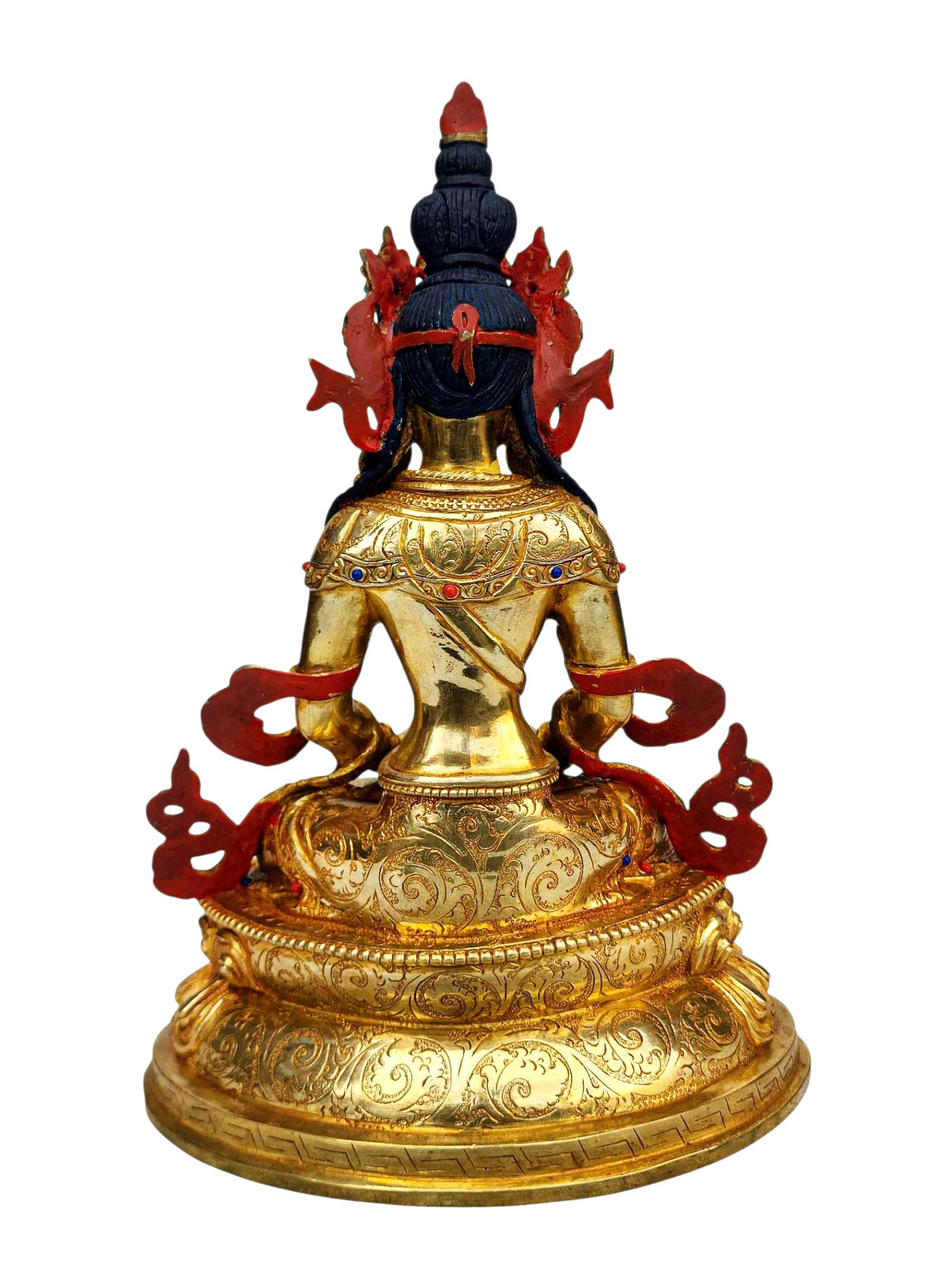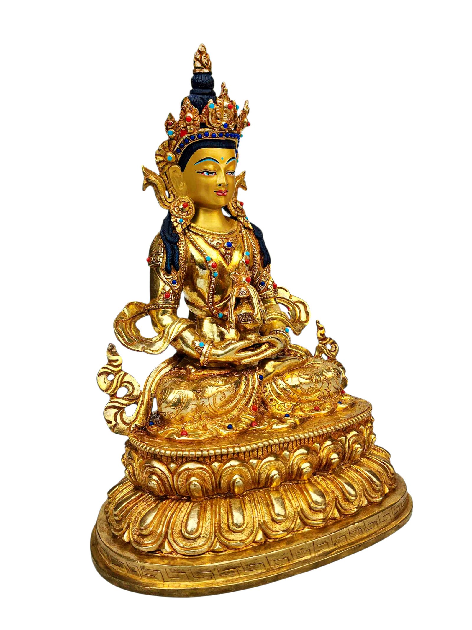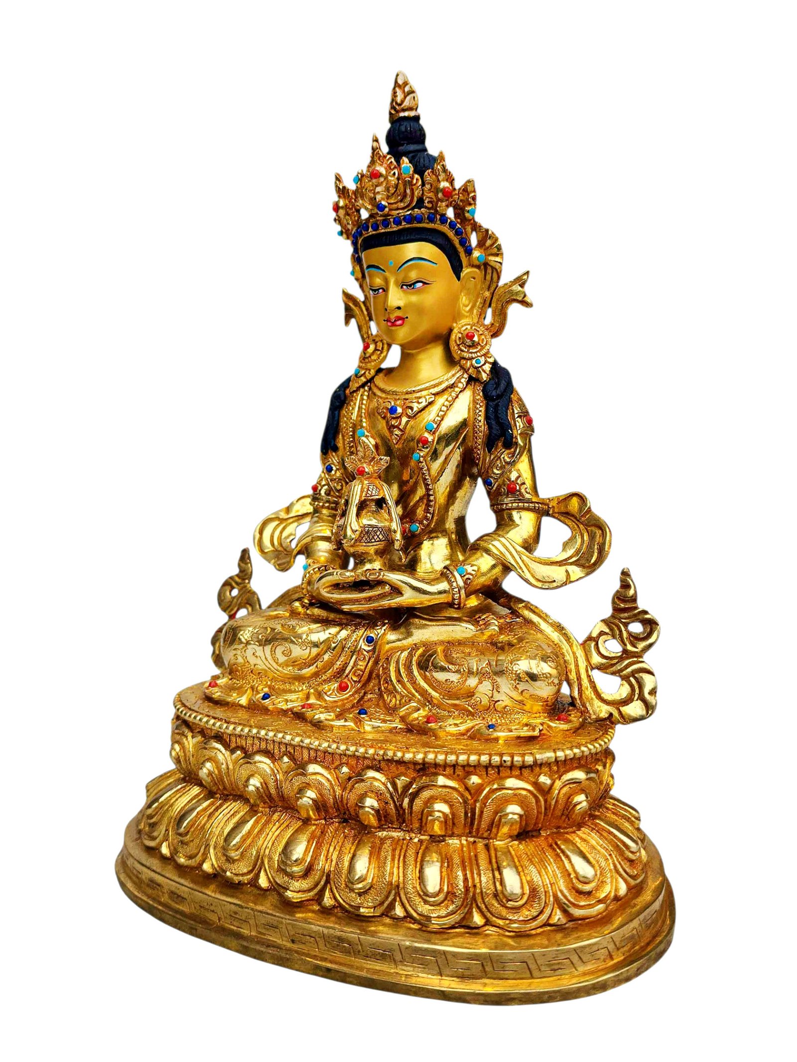 Aparimita, Buddhist Handmade Statue, Full Gold Plated, Stone Setting, Face Painted , Buddha of Long Life, Wisdom, and Spiritual Vitality