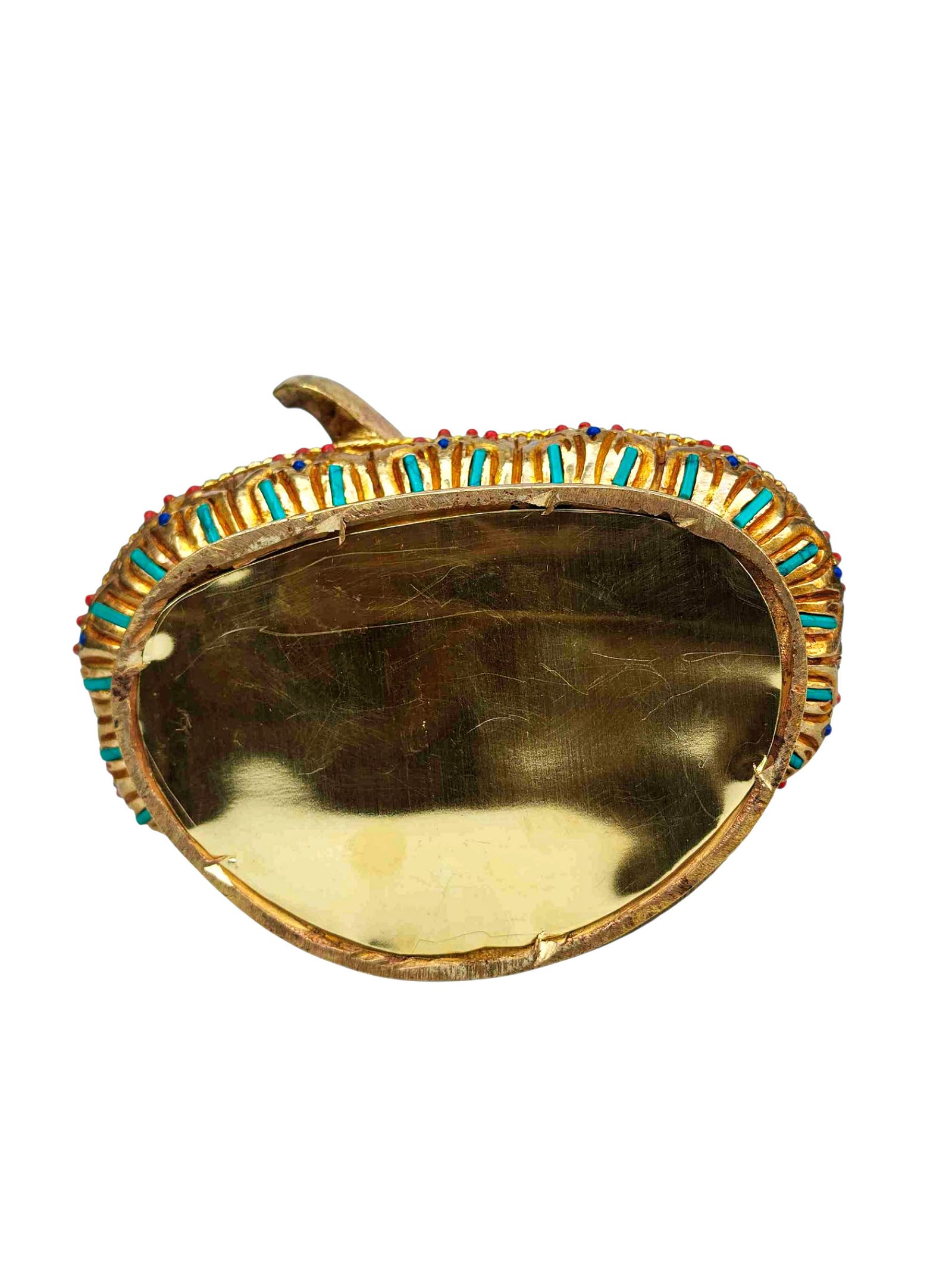 The Padmasambhava is adorned with an exquisite array of semi-precious stones, including turquoise, coral, and lapis lazuli. These stones are carefully selected and meticulously placed on the Padmasambhava's surface, adding a touch of opulence and enhancing its overall beauty. Each stone is thoughtfully positioned using a high-quality adhesive, ensuring secure and long-lasting attachment. The vibrant colors and unique patterns of the stones create a captivating contrast against the backdrop of the Padmasambhava, elevating its visual appeal and making it truly eye-catching. Read More