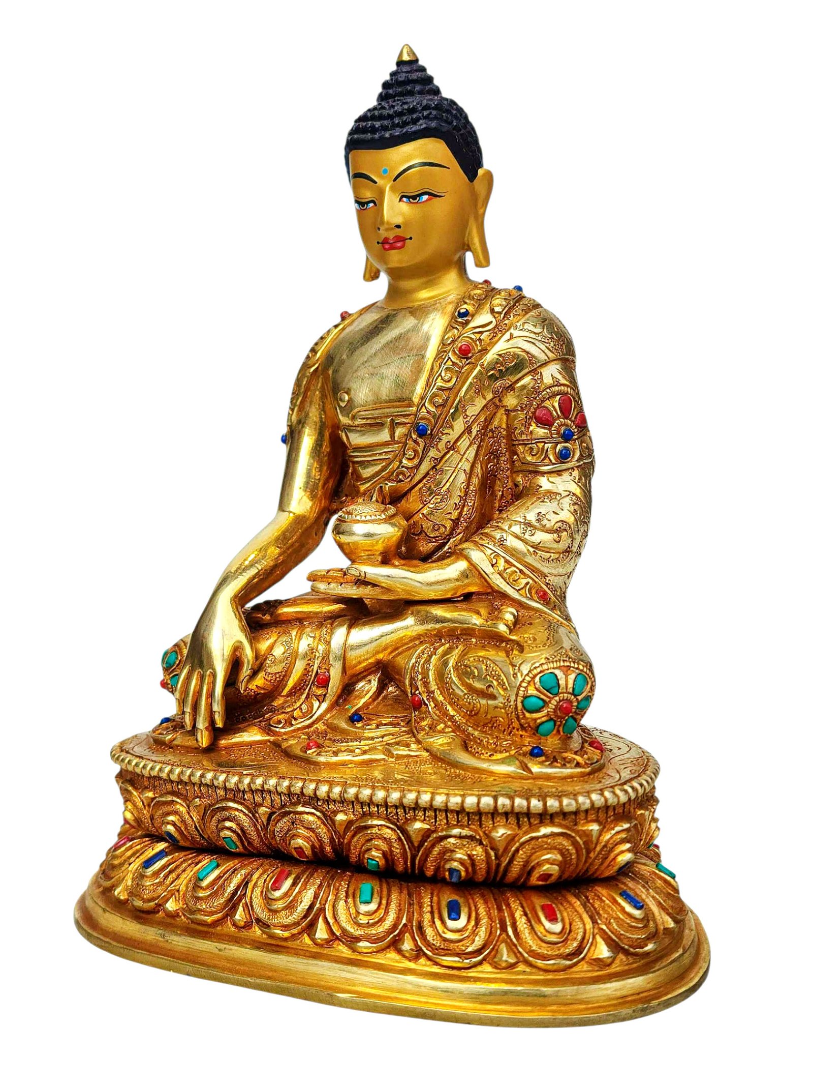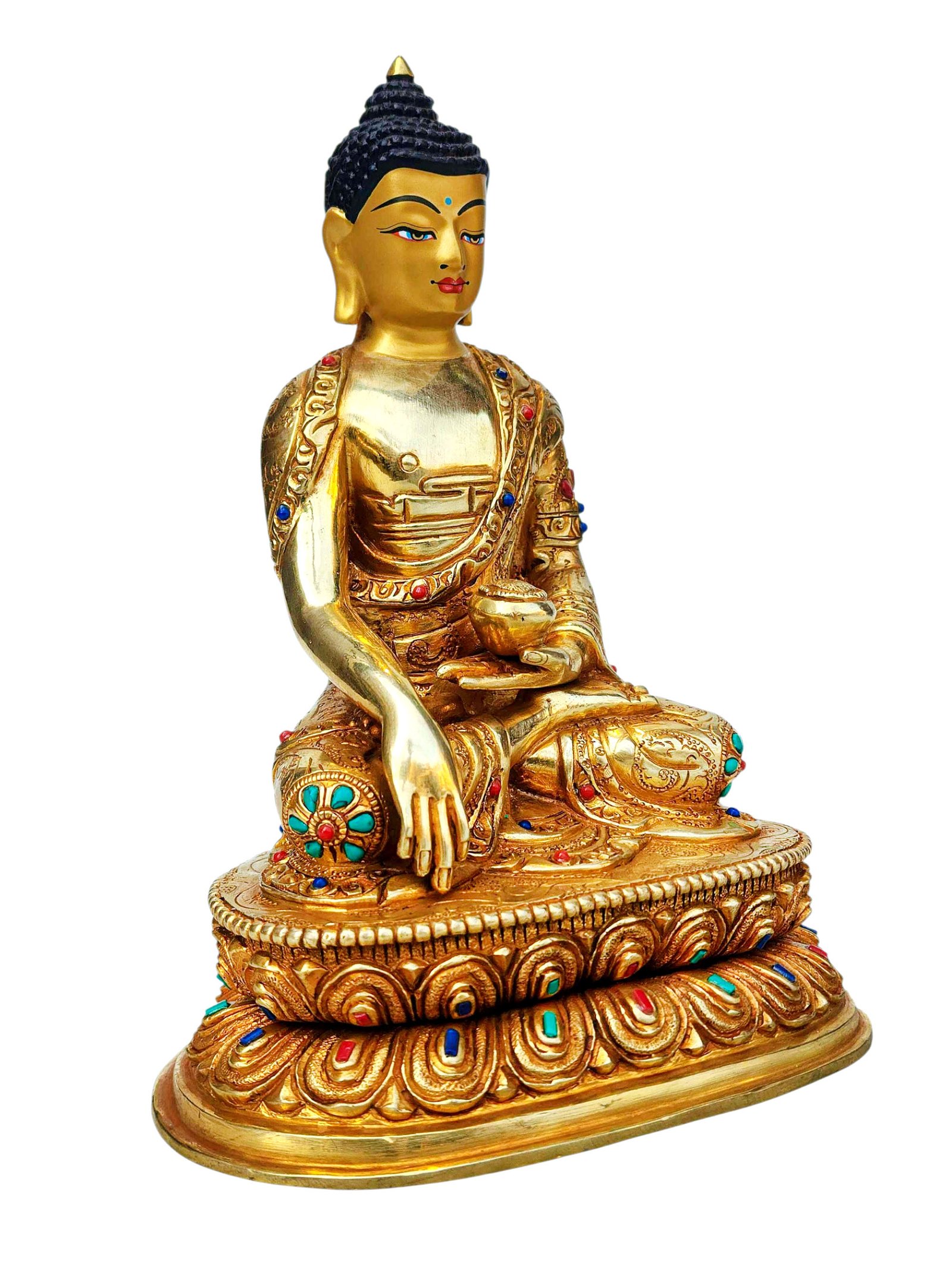 Shakyamuni Buddha, Buddhist Handmade Statue, Full Gold Plated, Stone Setting, Face Painted , The Enlightened One and Teacher of Humanity