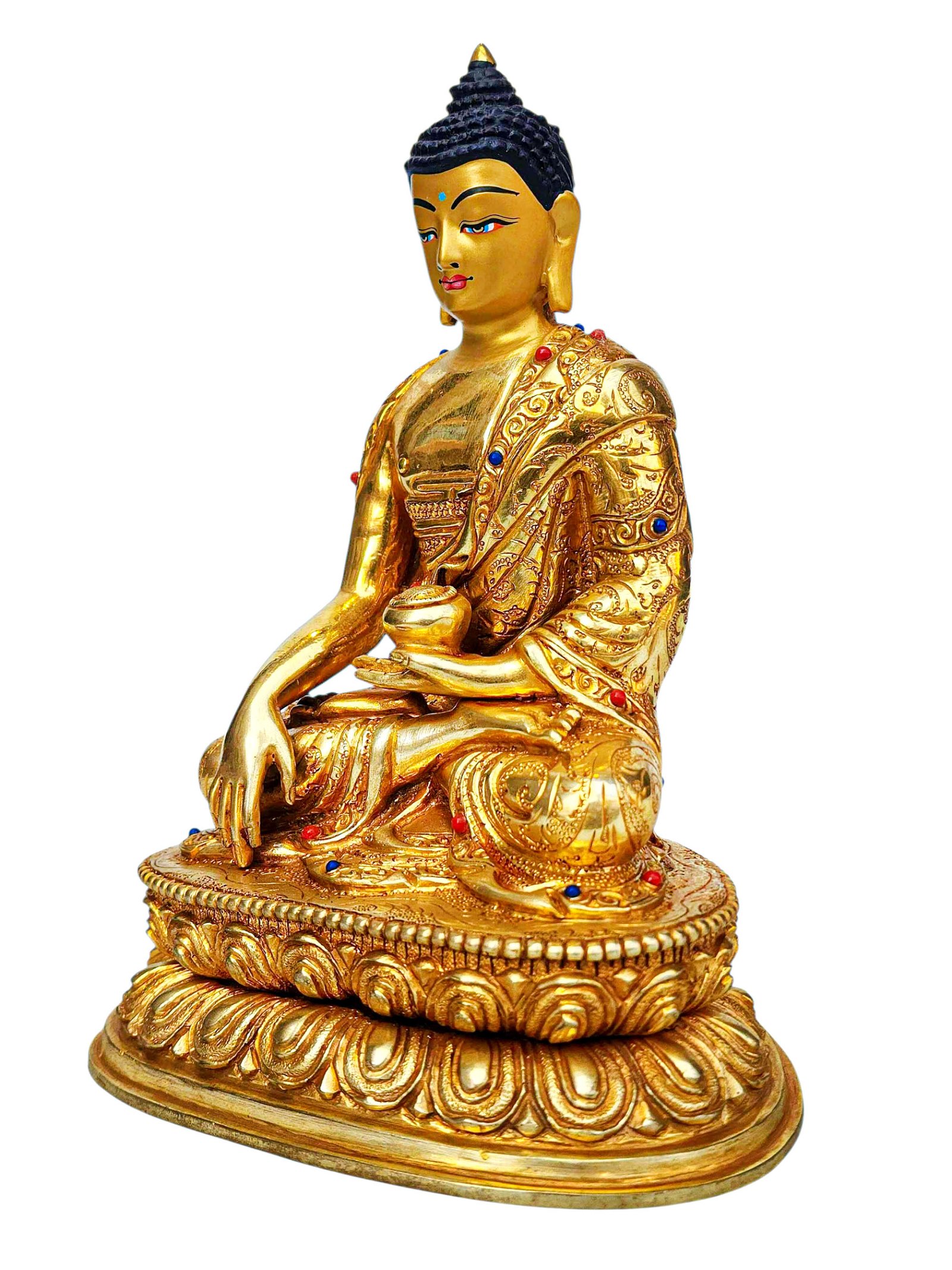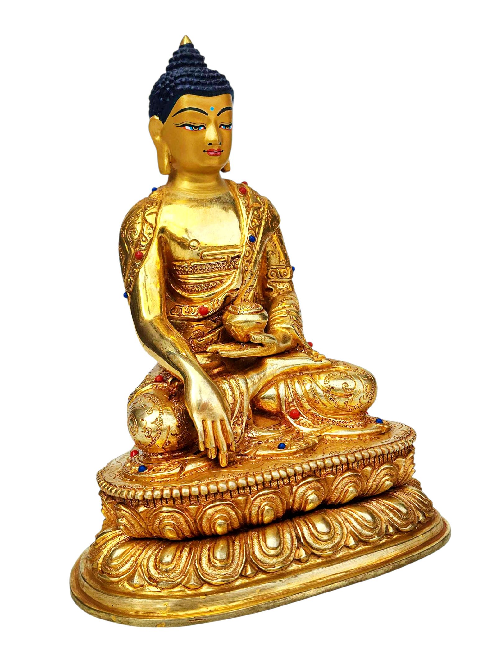 Shakyamuni Buddha, Buddhist Handmade Statue, Full Gold Plated, Stone Setting, Face Painted , The Enlightened One and Teacher of Humanity