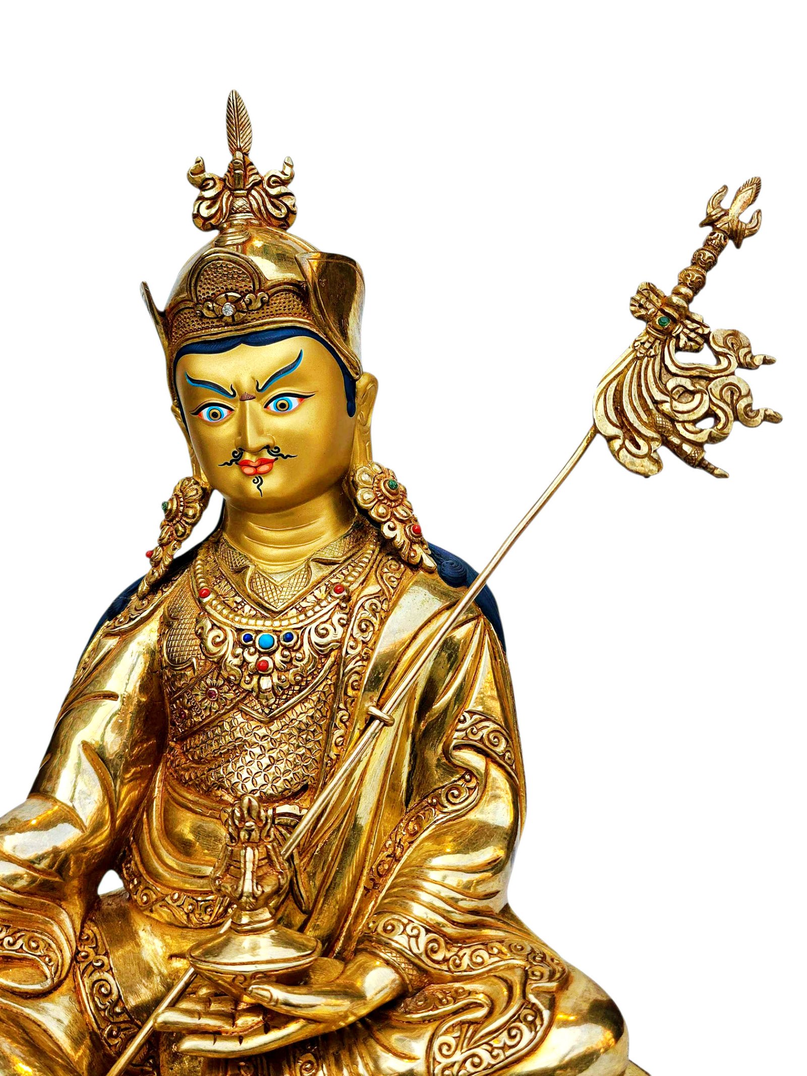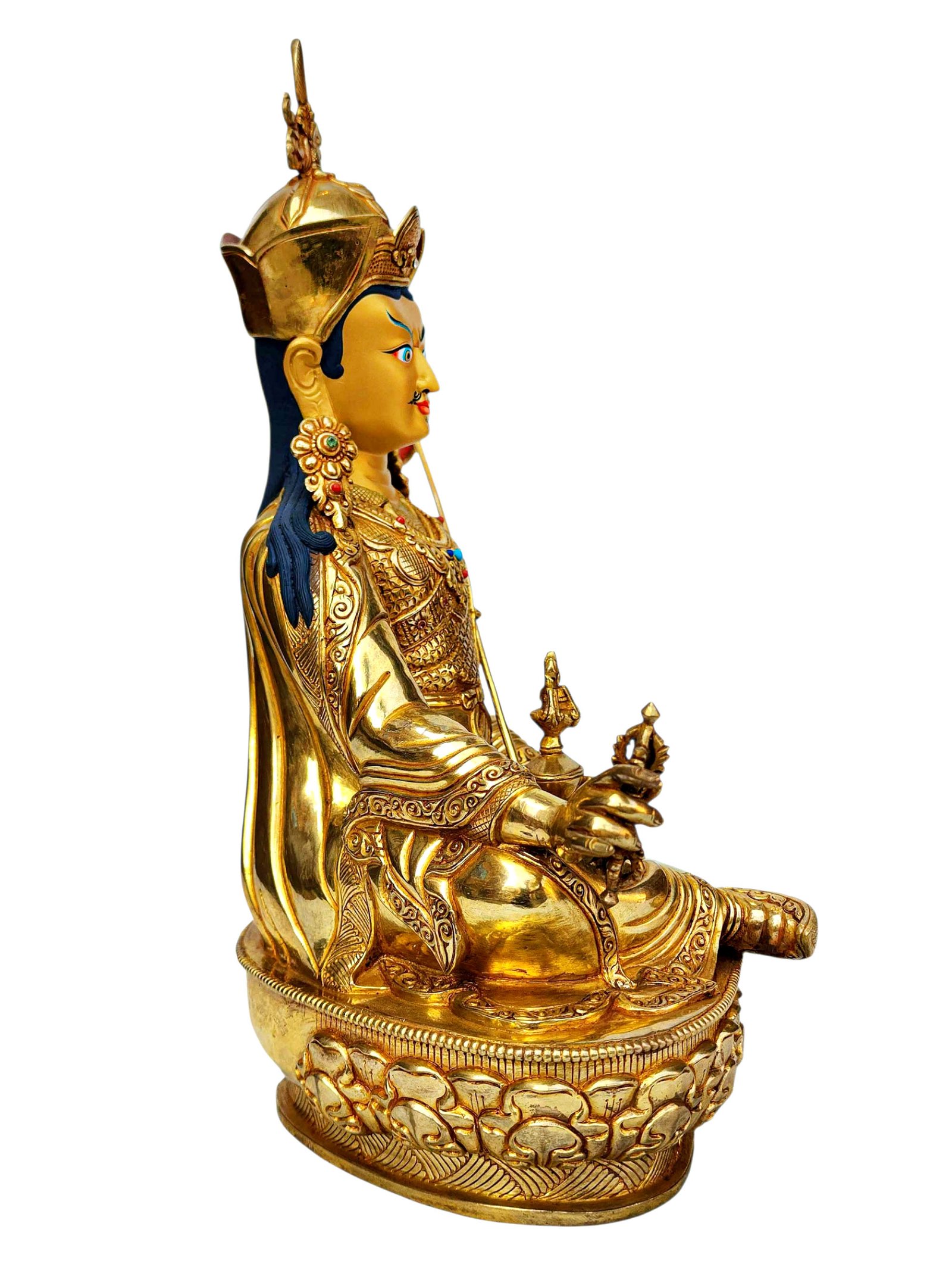 Premium, Padmasambhava, Buddhist Handmade Statue, Full Gold Plated, Stone Setting, Face Painted , The lotus-born master, wisdom beyond time