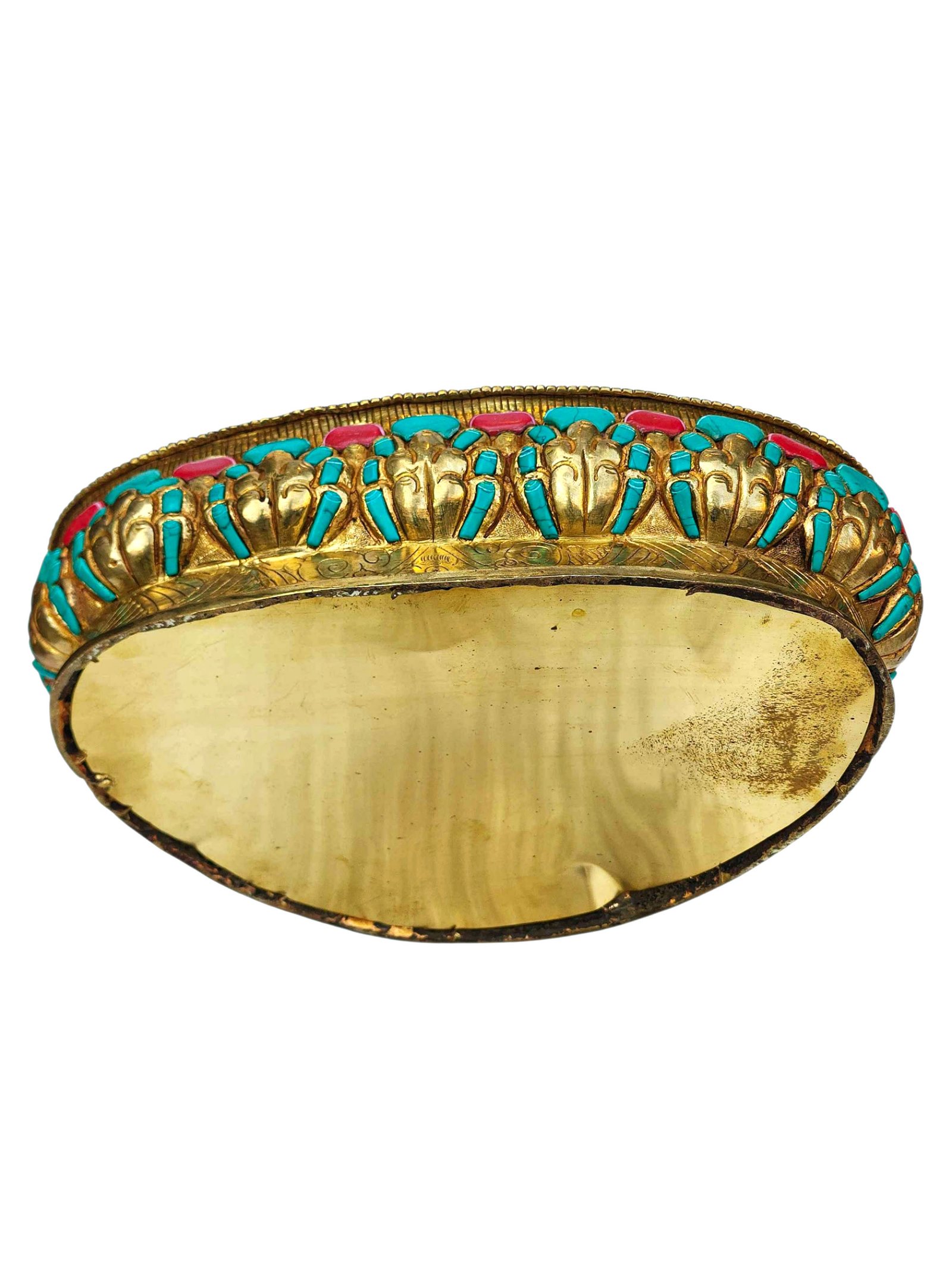The Padmasambhava is adorned with an exquisite array of semi-precious stones, including turquoise, coral, and lapis lazuli. These stones are carefully selected and meticulously placed on the Padmasambhava's surface, adding a touch of opulence and enhancing its overall beauty. Each stone is thoughtfully positioned using a high-quality adhesive, ensuring secure and long-lasting attachment. The vibrant colors and unique patterns of the stones create a captivating contrast against the backdrop of the Padmasambhava, elevating its visual appeal and making it truly eye-catching. Read More
