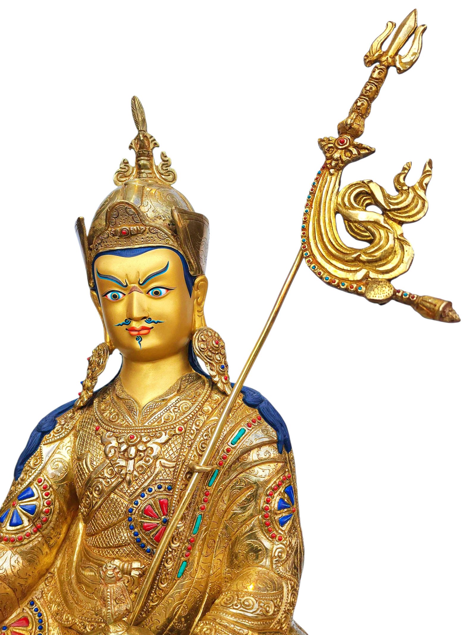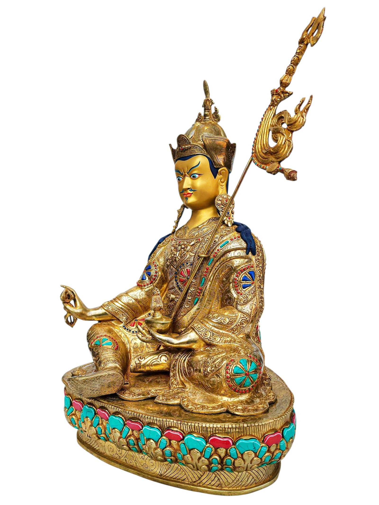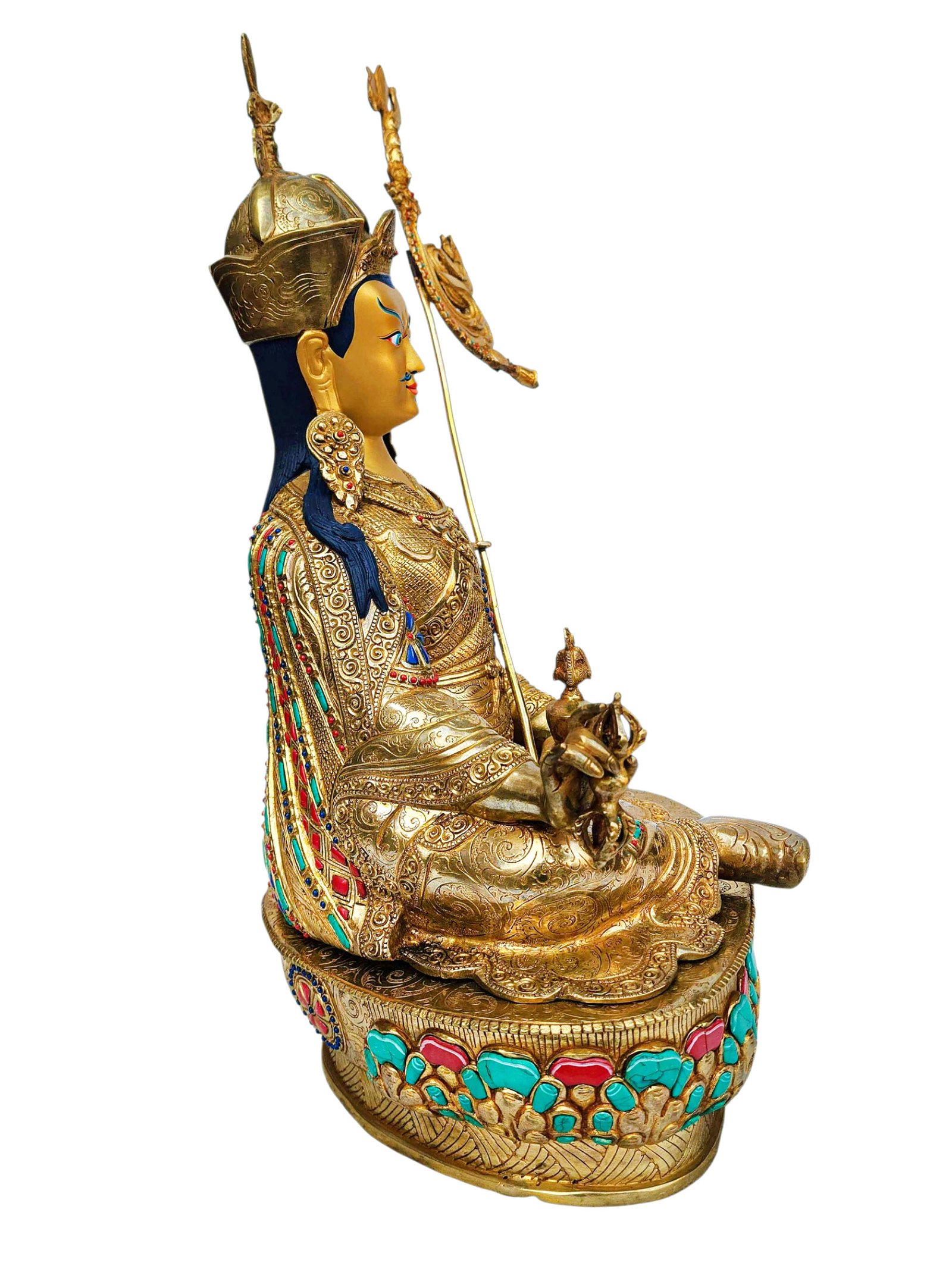 Premium Padmasambhava Handmade Statue, Full Gold Plated, Stone Setting, Face Painted , The lotus-born master, wisdom beyond time