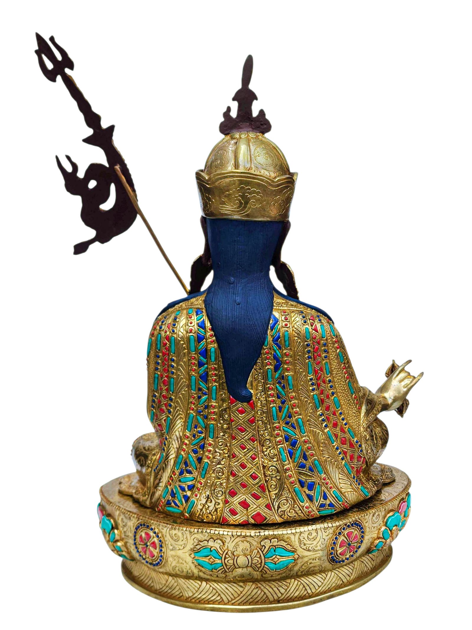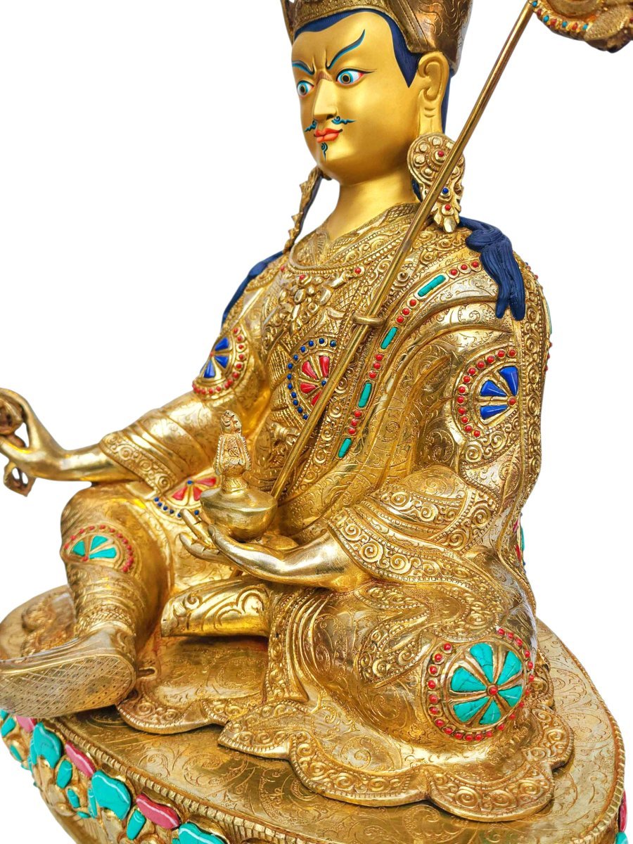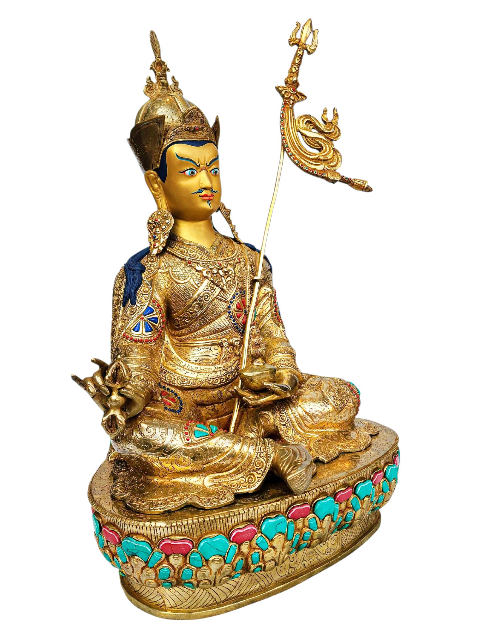 Premium Padmasambhava Handmade Statue, Full Gold Plated, Stone Setting, Face Painted , The lotus-born master, wisdom beyond time