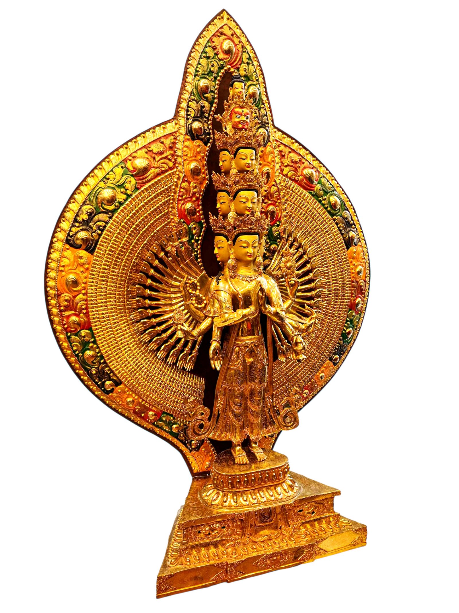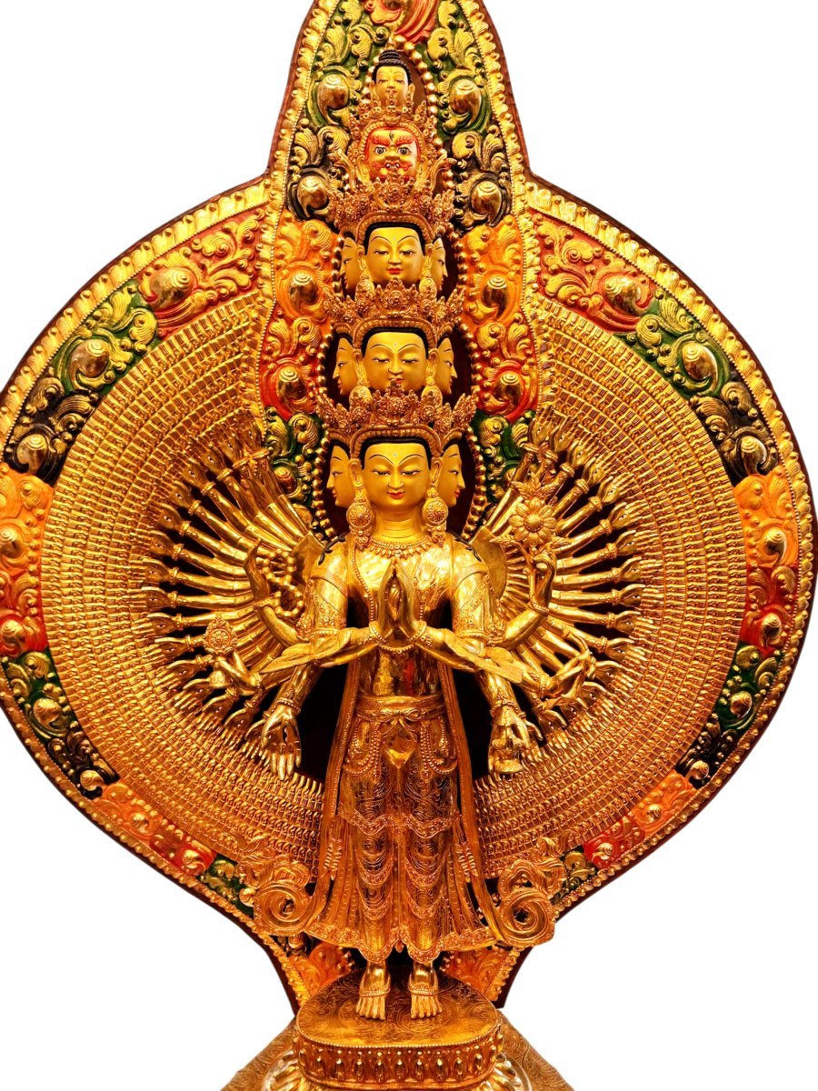 1000-Armed Sahasrabhuja Avalokitesvara Handmade Statue, Full Gold Plated, Hand Painted |