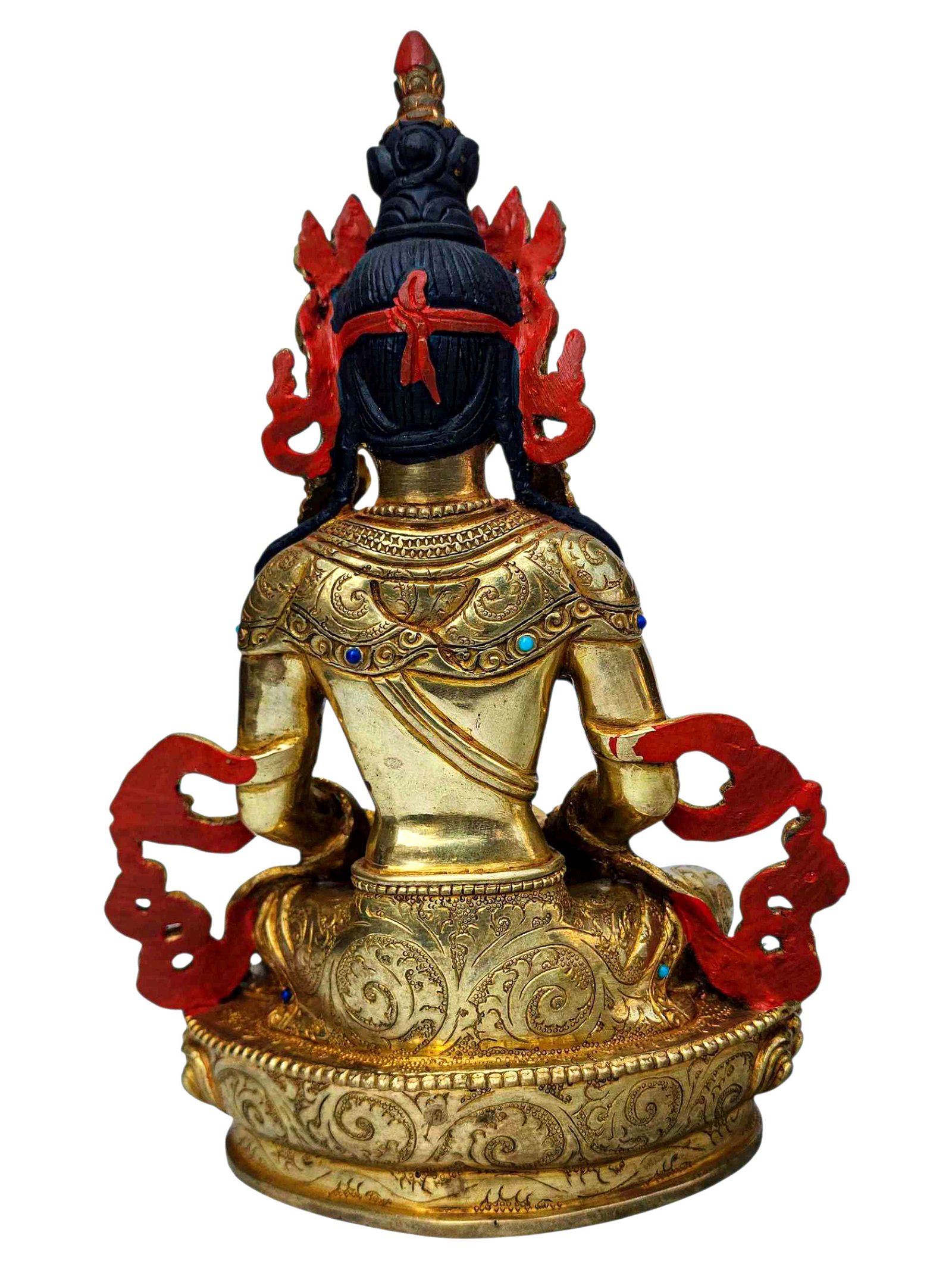 Aparimita Handcrafted Buddhist Statue, Full Fire Gold Plated, Stone Inlay, Hand Painted , Buddha of Long Life, Wisdom, and Spiritual Vitality