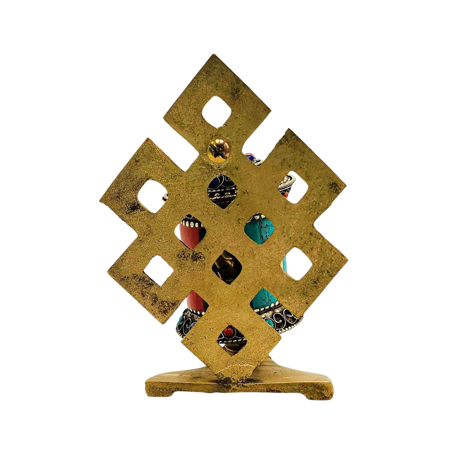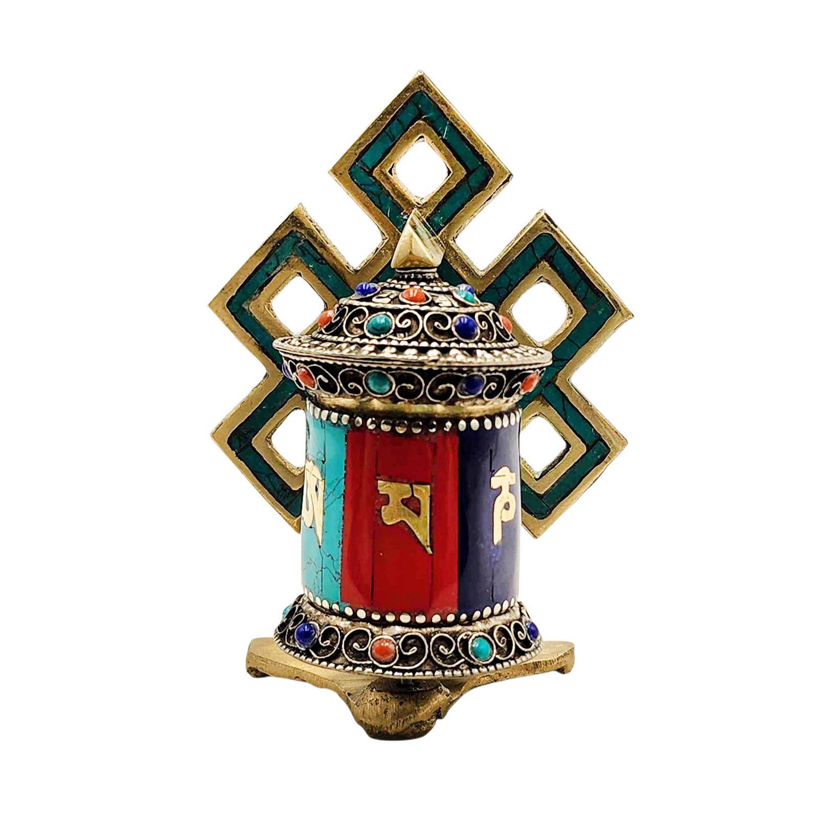 The Prayer wheel Stand is adorned with an exquisite array of semi-precious stones, including turquoise, coral, and lapis lazuli. These stones are carefully selected and meticulously placed on the Prayer wheel Stand's surface, adding a touch of opulence and enhancing its overall beauty. Each stone is thoughtfully positioned using a high-quality adhesive, ensuring secure and long-lasting attachment. The vibrant colors and unique patterns of the stones create a captivating contrast against the backdrop of the Prayer wheel Stand, elevating its visual appeal and making it truly eye-catching. Read More