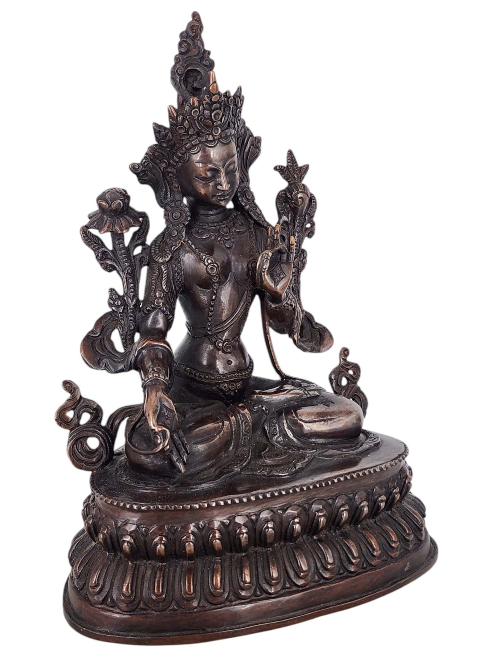White Tara Statue Handmade, Chocolate Oxidized, Double Lotus Base , Goddess of longevity, healing, and serene compassion