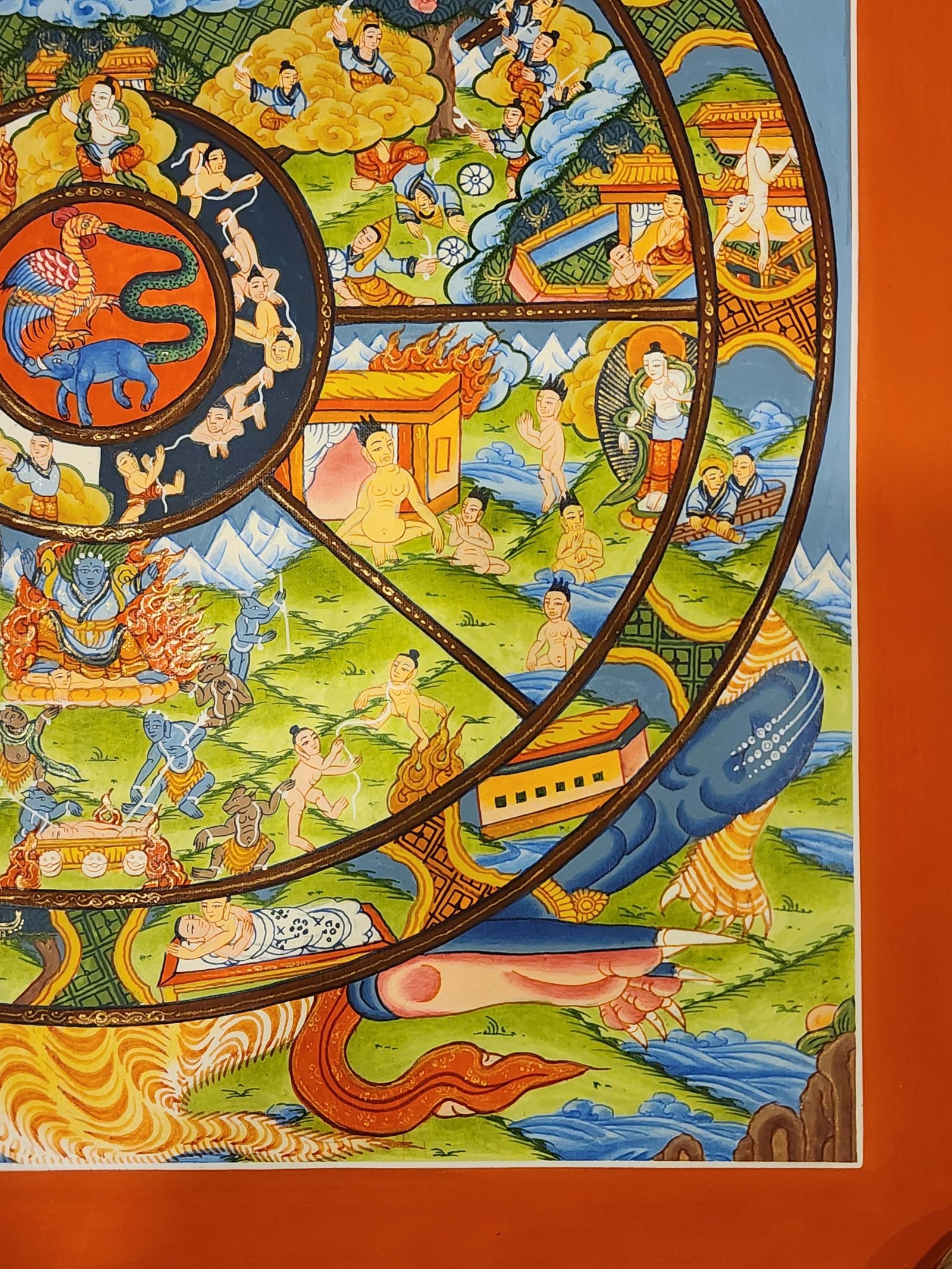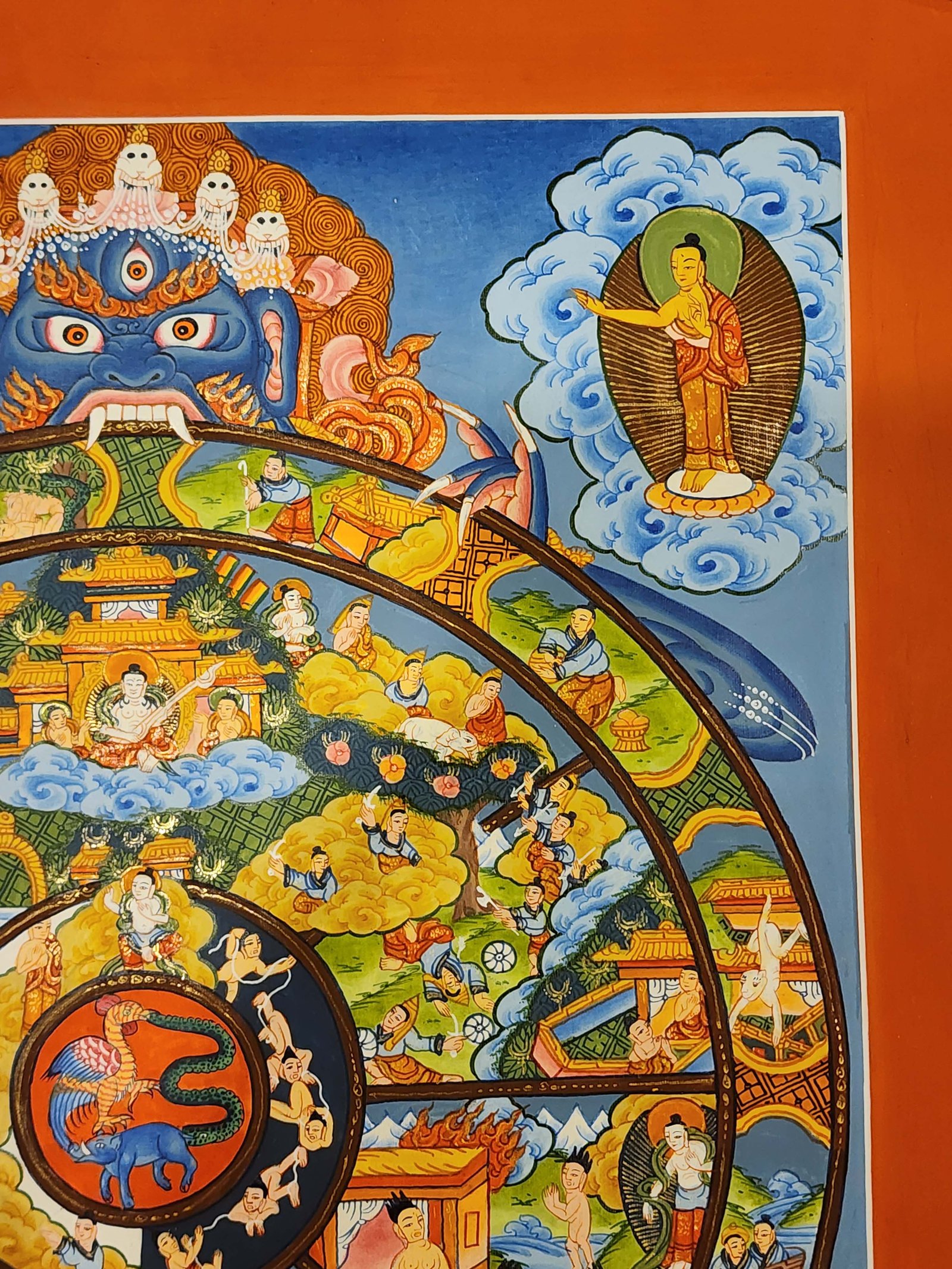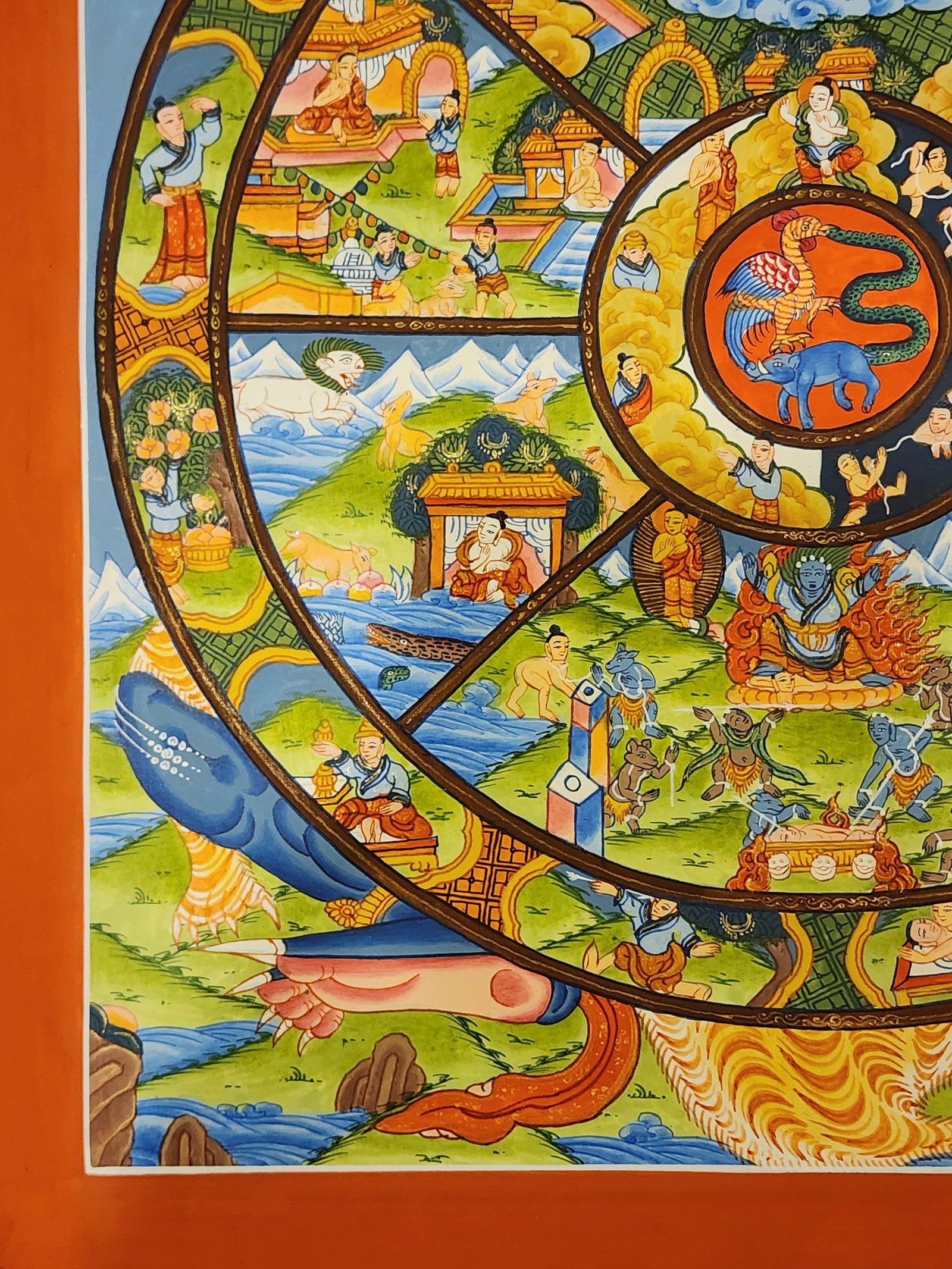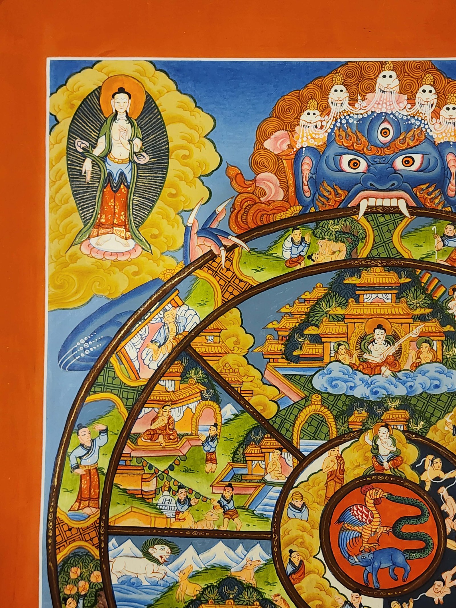 Wheel of Life Bhavachakra Thangka Authentic Hand-Painted Buddhist Artwork