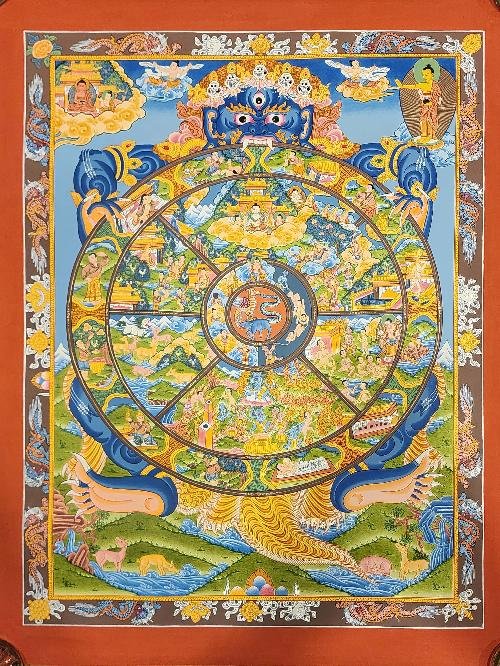 Wheel of Life Bhavachakra Thangka Traditional Tibetan Painting with Real Gold