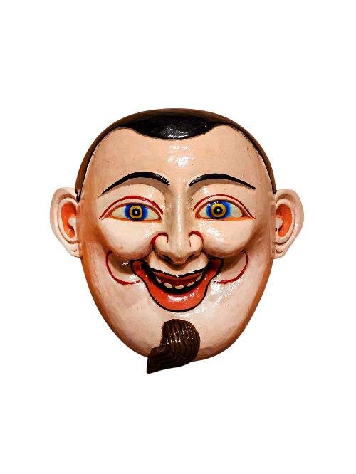 Artisan Joker Wooden Mask, Tibetan Style Craft, Poplar Wood, Traditional Colors |