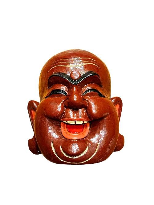 Handcrafted Laughing Buddha Wooden Mask, Tibetan Style Wall Decor, Poplar Wood, Traditional Colors |