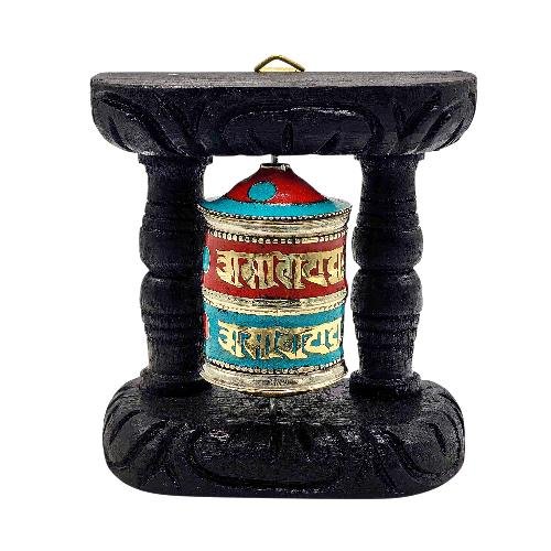 Handmade Buddhist Wall Prayer Wheel with Mantra Inside, Stone Setting, OMPH, Wall Mountable , A wheel containing mantras, used to accumulate merit and spread blessings