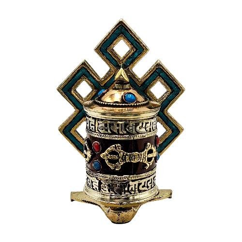 The Prayer wheel Stand is adorned with an exquisite array of semi-precious stones, including turquoise, coral, and lapis lazuli. These stones are carefully selected and meticulously placed on the Prayer wheel Stand's surface, adding a touch of opulence and enhancing its overall beauty. Each stone is thoughtfully positioned using a high-quality adhesive, ensuring secure and long-lasting attachment. The vibrant colors and unique patterns of the stones create a captivating contrast against the backdrop of the Prayer wheel Stand, elevating its visual appeal and making it truly eye-catching. Read More
