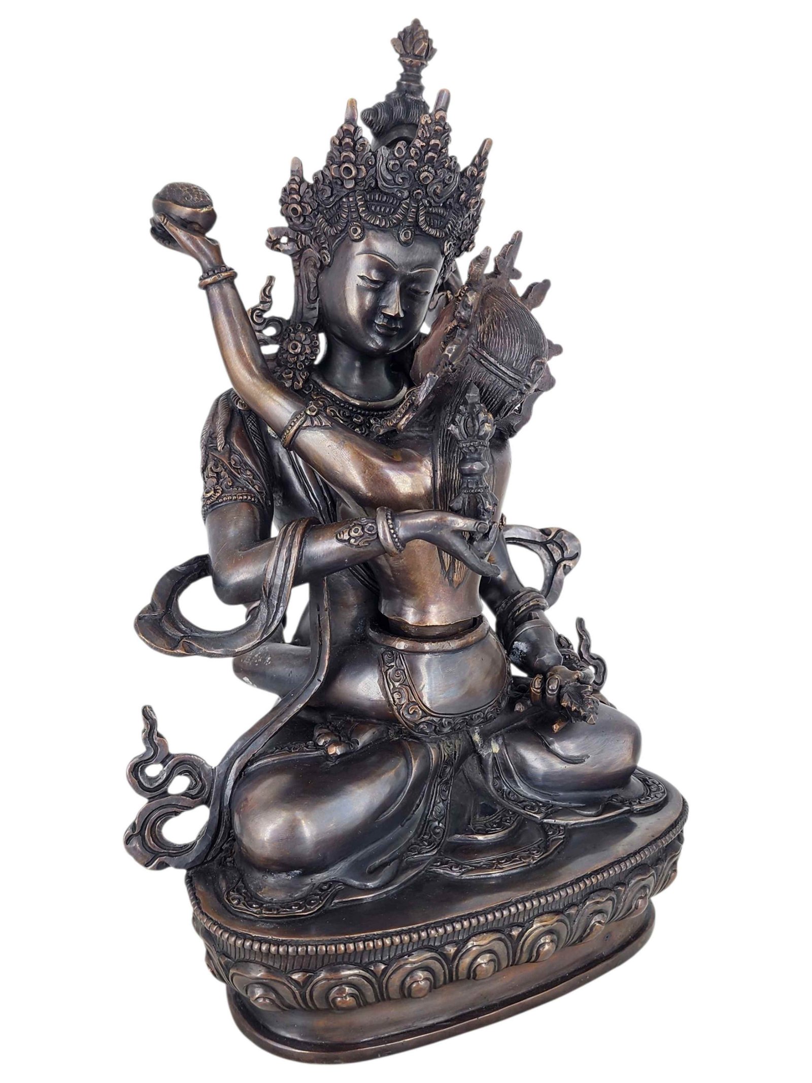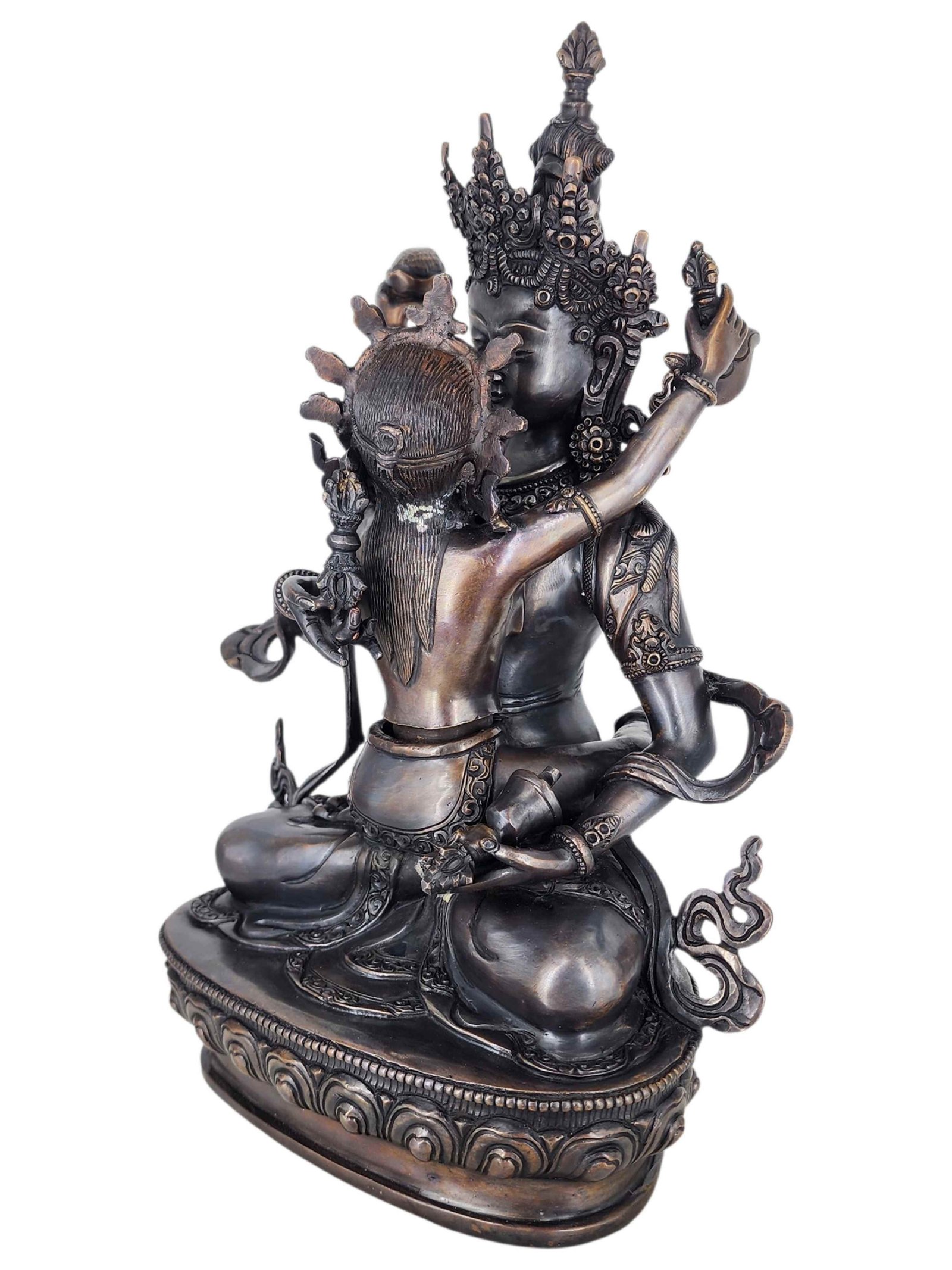 Vajrasattva Spiritual Purification Shakti Yab Yum Statue Copper with Silver and Chocolate Oxidized Finish , Purifier of karma, embodying purity and enlightenment
