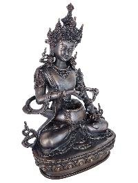This Vajrasattva is made by the process of the Lost-Wax system. The lost-wax process, also known as investment casting, is a time-honored technique used to create metal sculptures. It involves several steps that have been practiced for thousands of years. Skilled artisans begin by sculpting a detailed wax model, capturing every intricate detail of the desired sculpture. The wax model is then coated with a ceramic shell, formed by multiple layers of ceramic material. Once the shell has cured, the wax is melted and drained out, leaving behind a cavity. Molten metal is poured into the cavity, creating a precise replica of the original wax model. After the metal has cooled and solidified, the ceramic shell is carefully removed, revealing the final metal sculpture. Read More