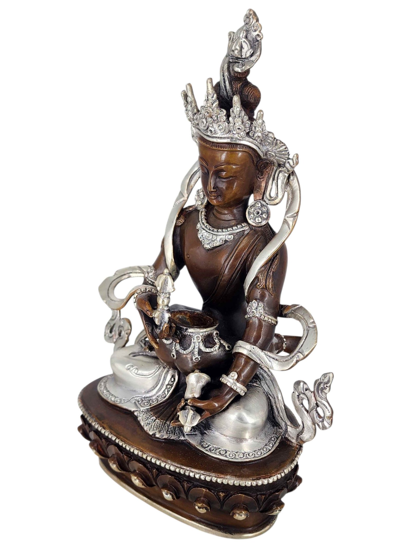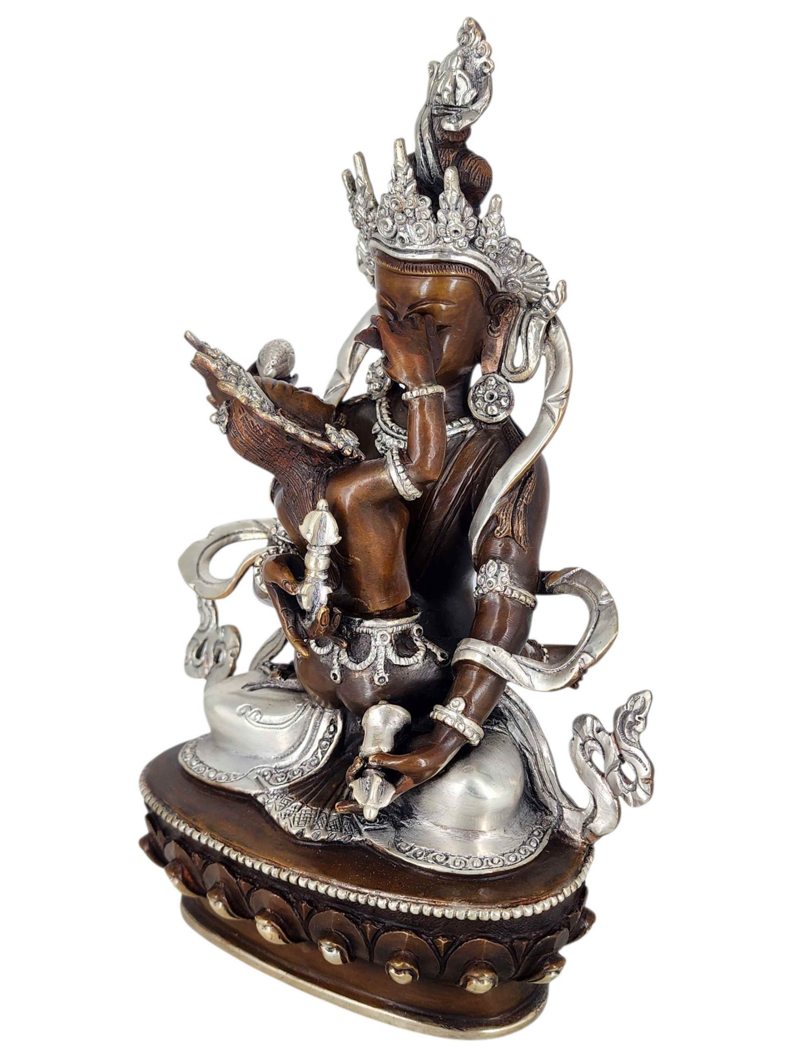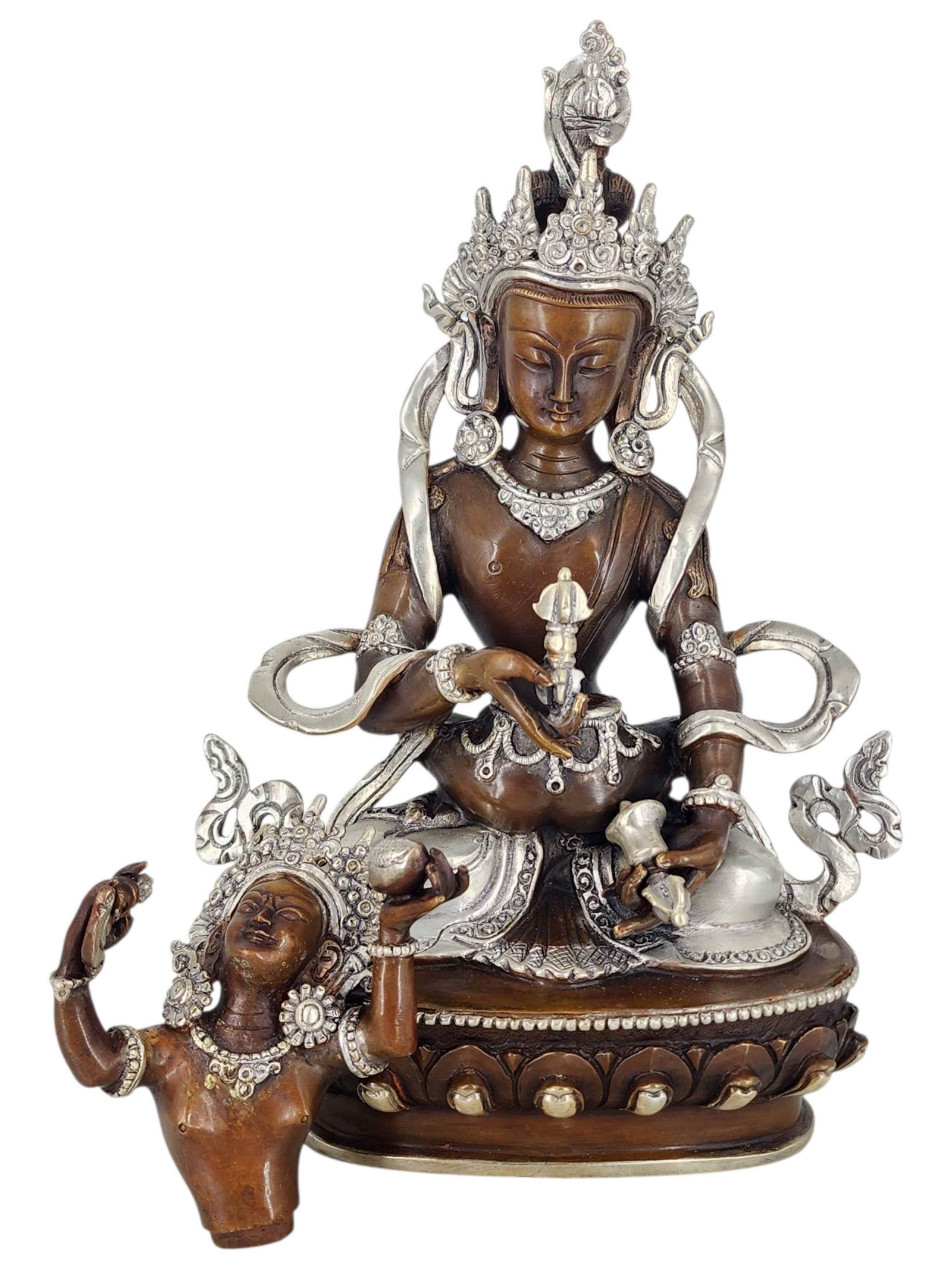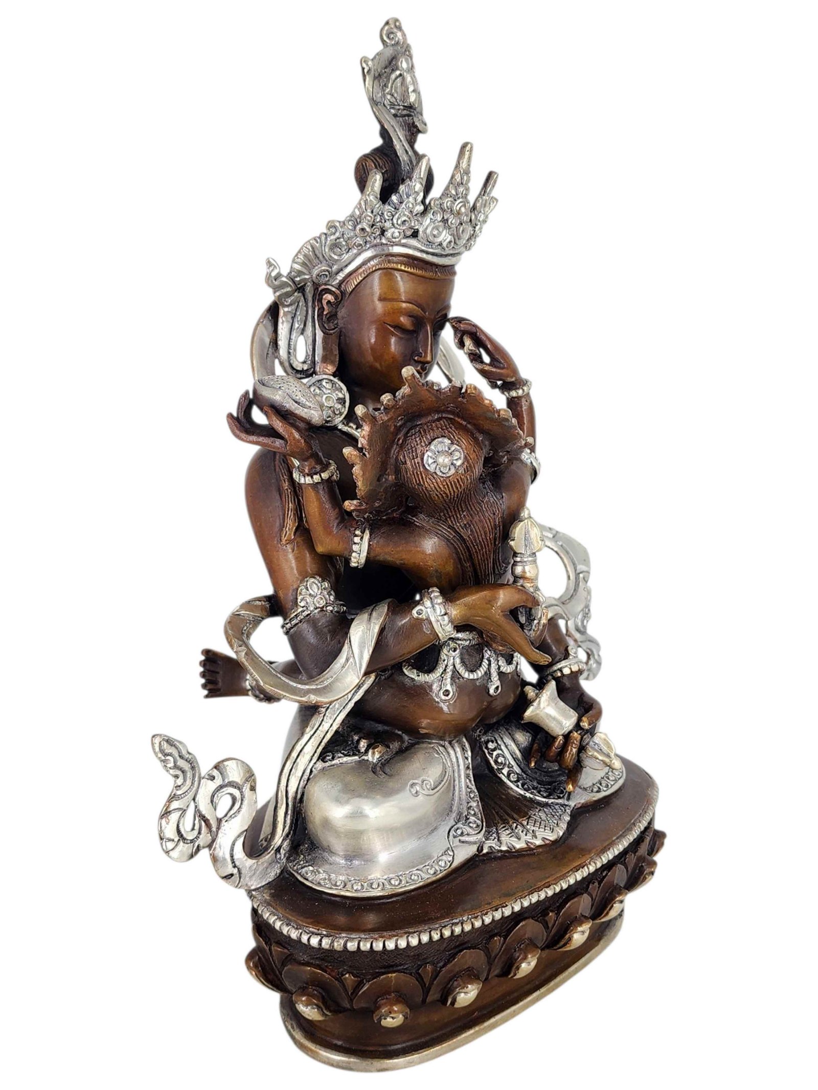 Vajrasattva Purification Deity Shakti Yab Yum Statue Copper with Silver and Chocolate Oxidized Finish , Purifier of karma, embodying purity and enlightenment