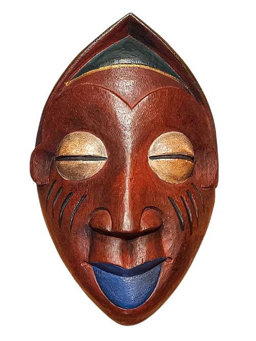 this Wooden Mask mask is Nepali handmade mask and we are Introducing our exquisite collection of Nepali handmade hand-carved wooden Buddhist masks and wall hangings, meticulously crafted by skilled artisans. Each piece in this collection reflects the rich cultural heritage and spiritual significance of Nepal. These masks and wall hangings are not just decorative pieces but hold deep symbolic meaning, making them perfect for adding an authentic touch to your living spaces or meditation rooms. Read More
