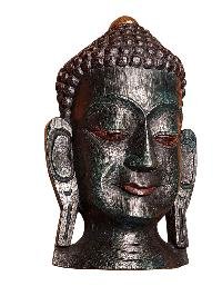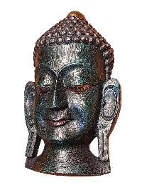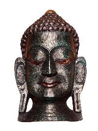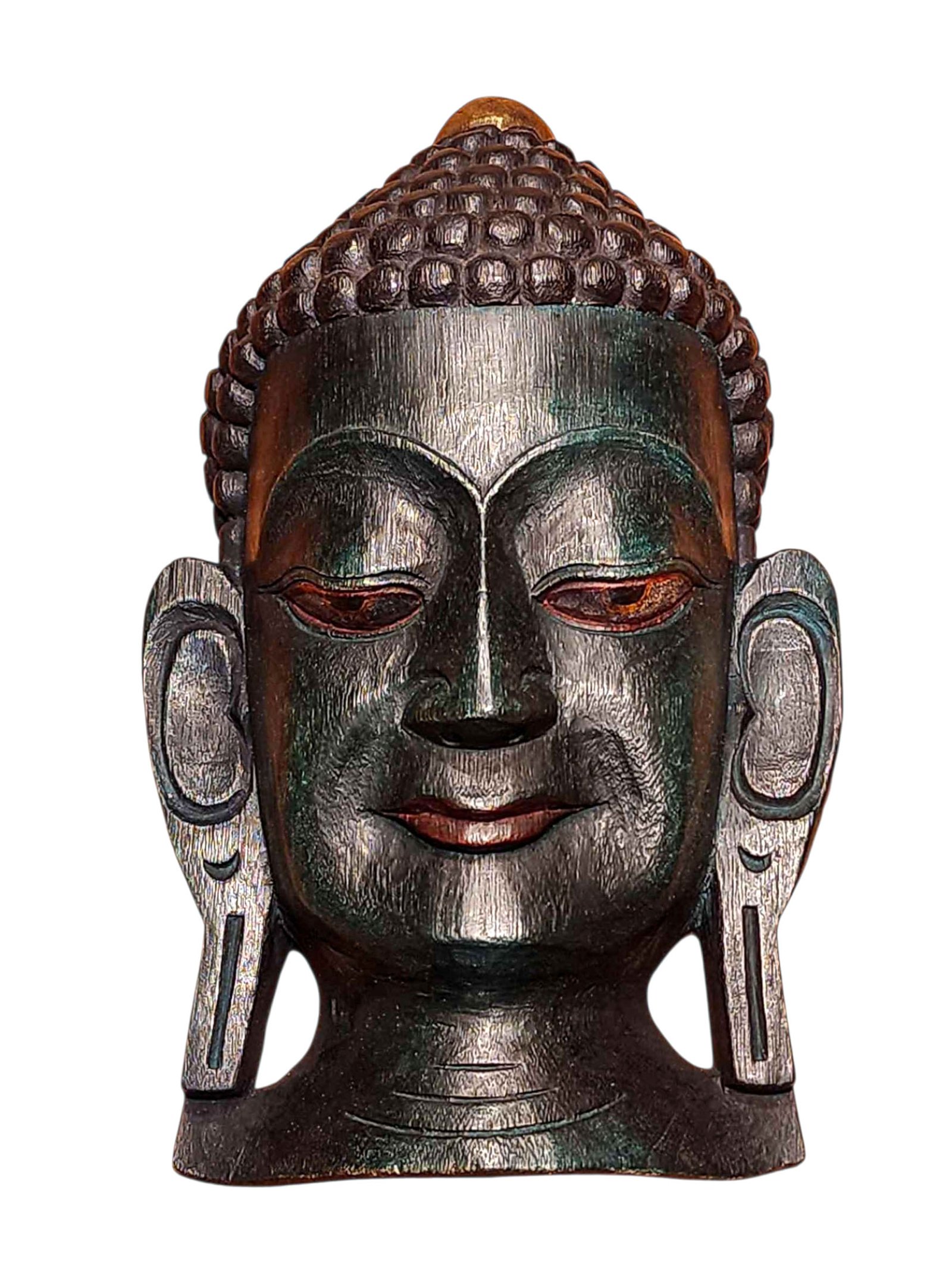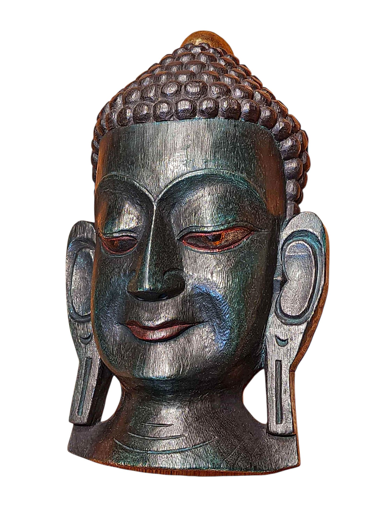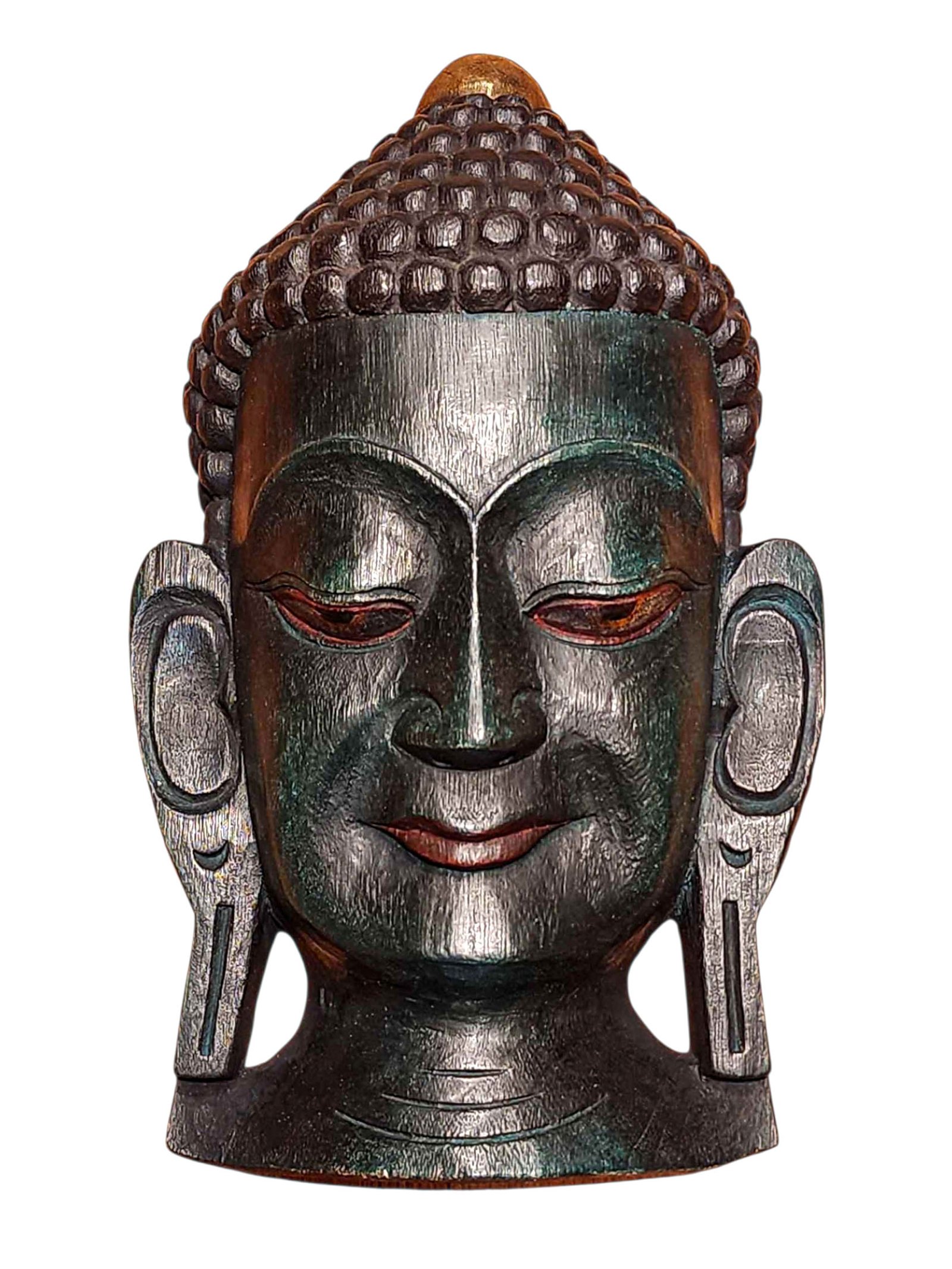 Handmade Wooden Mask, Buddha, Tibetan Style with Traditional Color, Poplar Wood |