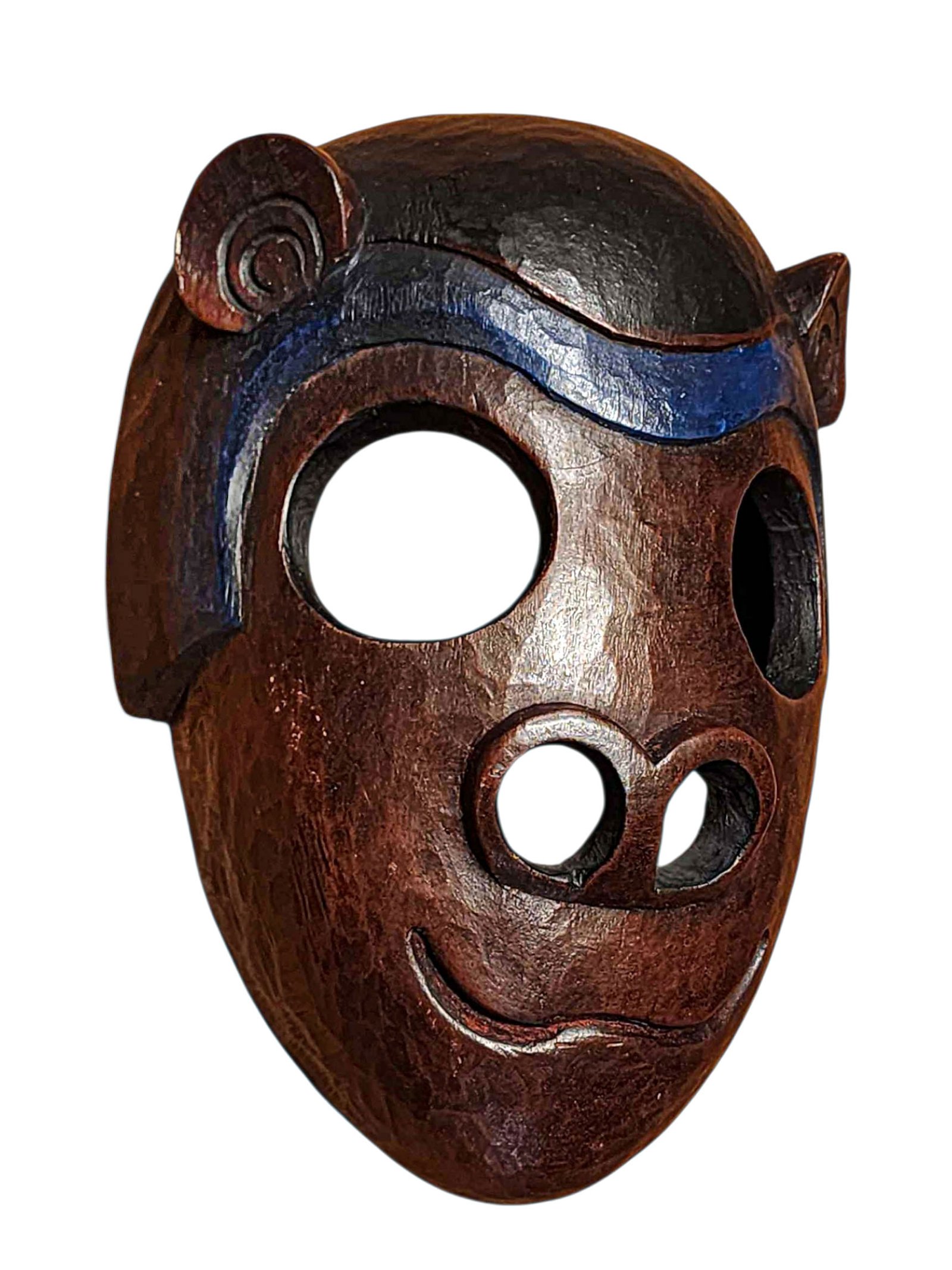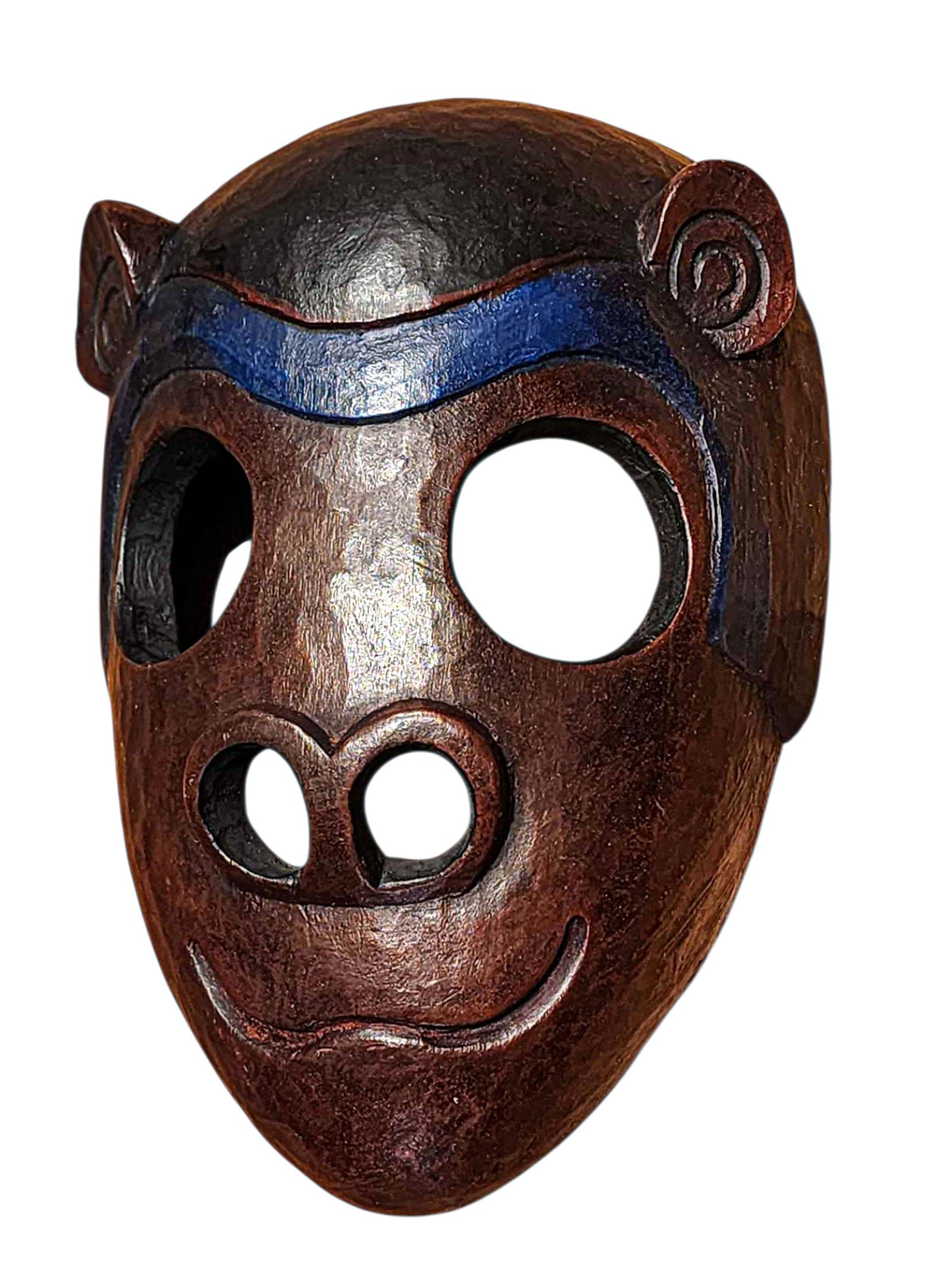 Handmade Wooden Mask, Monkey, Tibetan Style with Traditional Color, Poplar Wood |