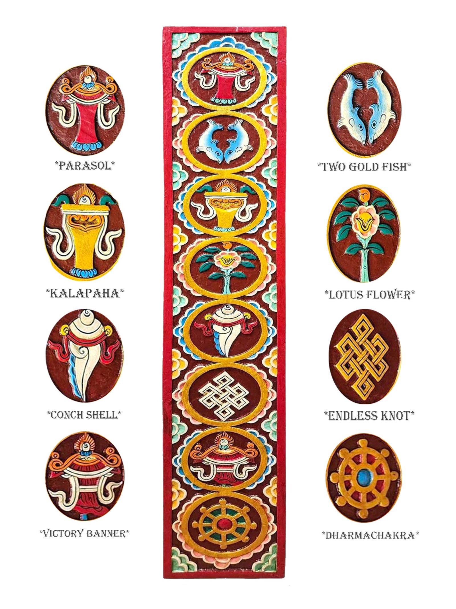 Ashtamangala Carved, Handmade Wall Hanging, Painted |