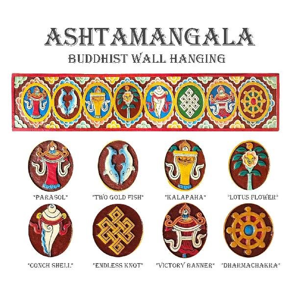 Ashtamangala Carved, Handmade Wall Hanging, Painted |