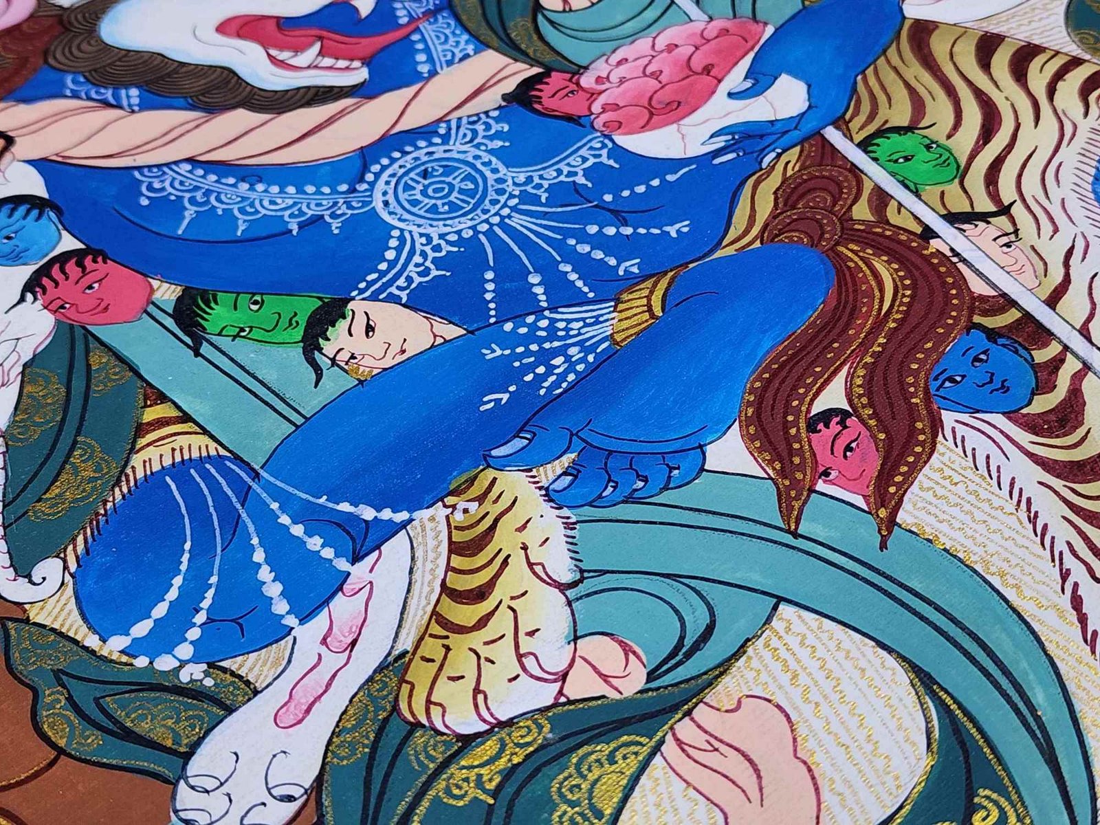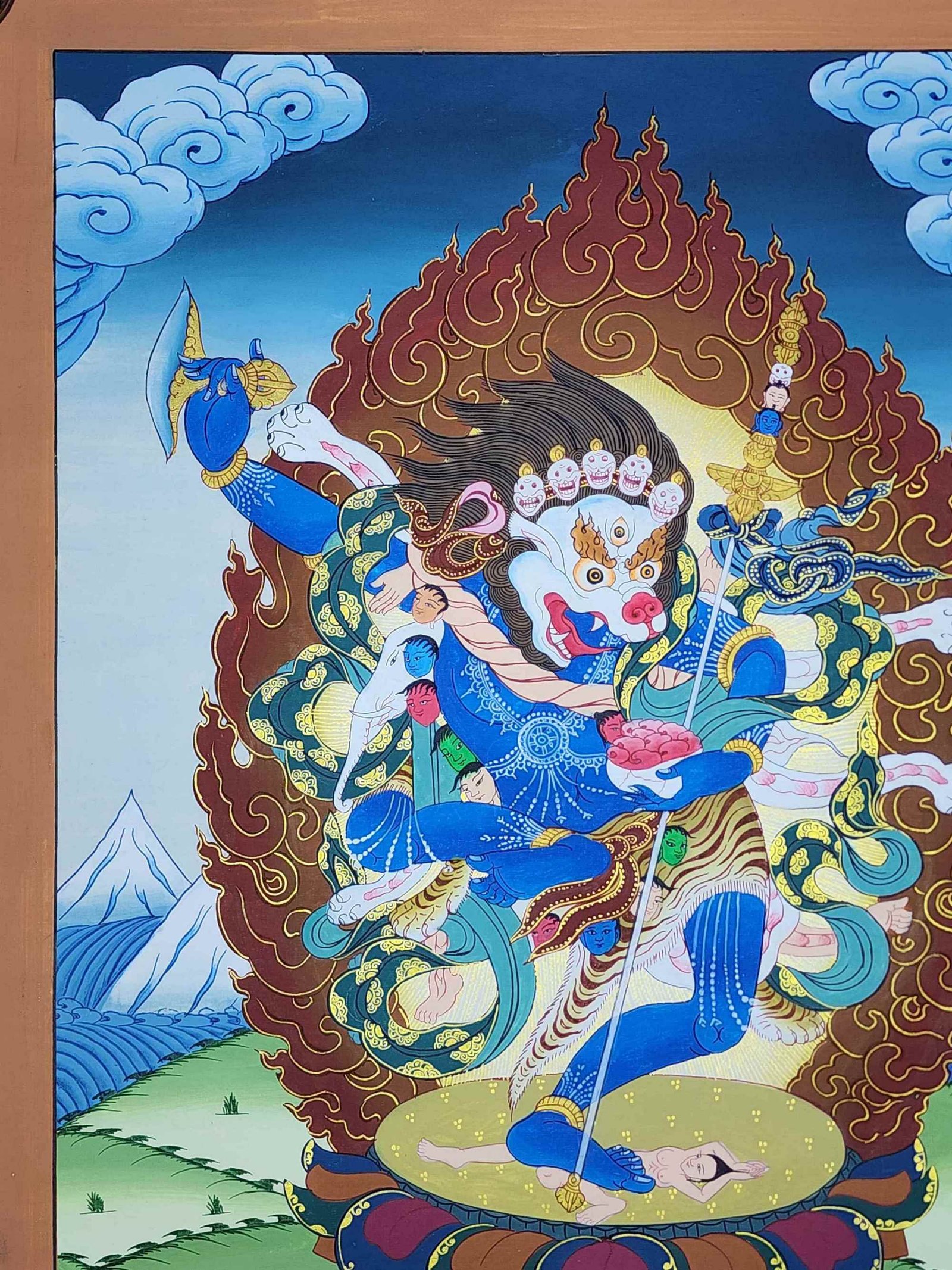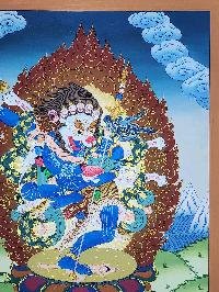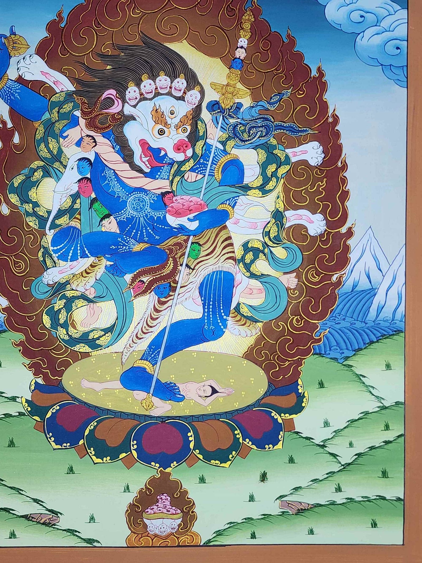 Simhamukha Yogini Lion Faced Dakini Tibetan Thangka Painting with Esoteric Detailing , Fierce Protector and Obstacle Remover
