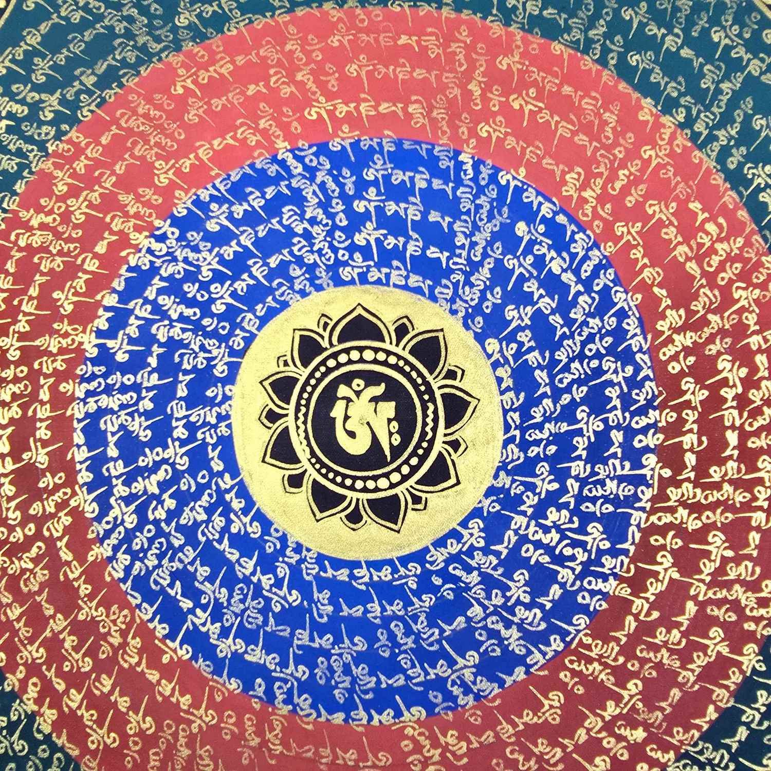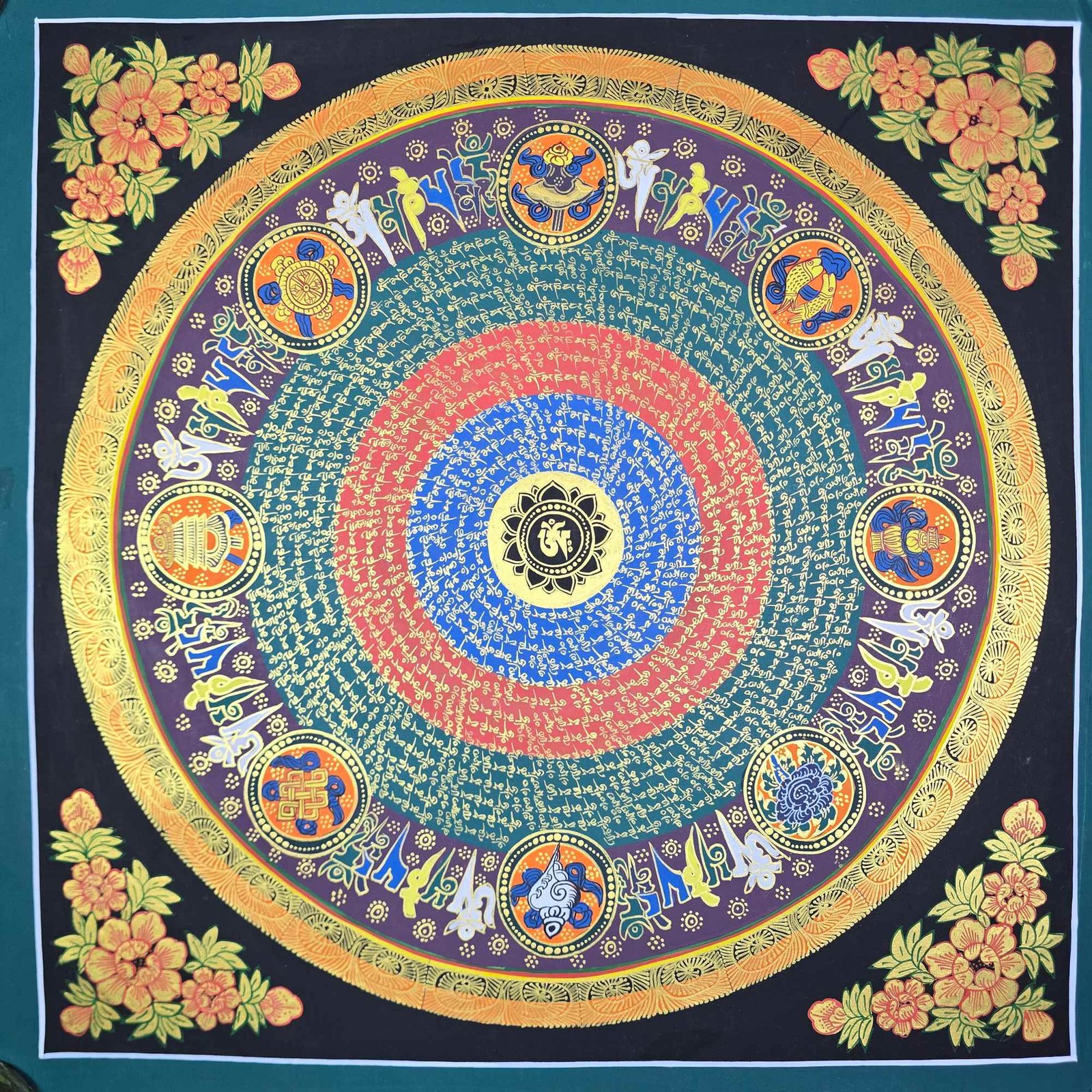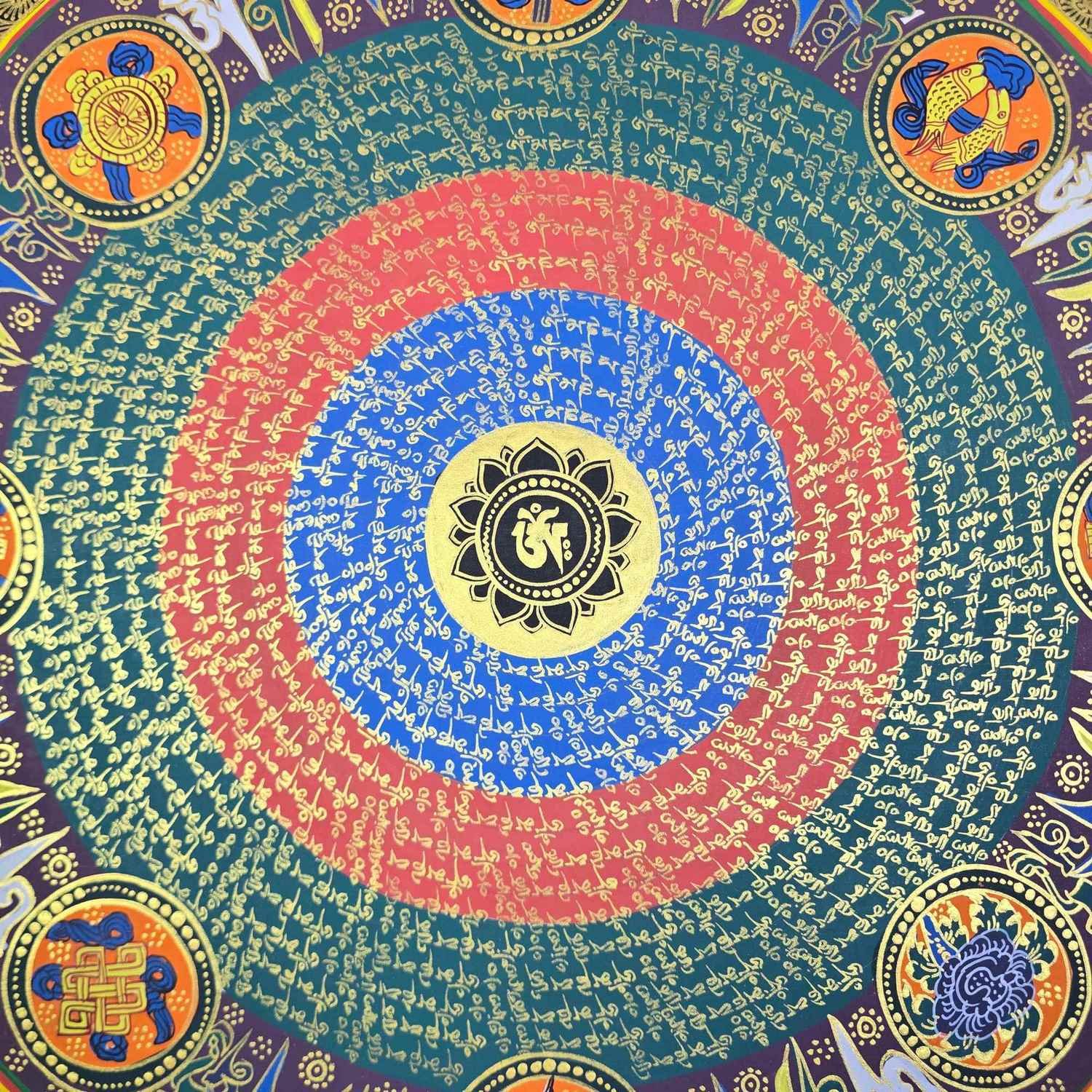 Hand Painted Tibetan Om Mani Padme Hum Mandala Thangka |