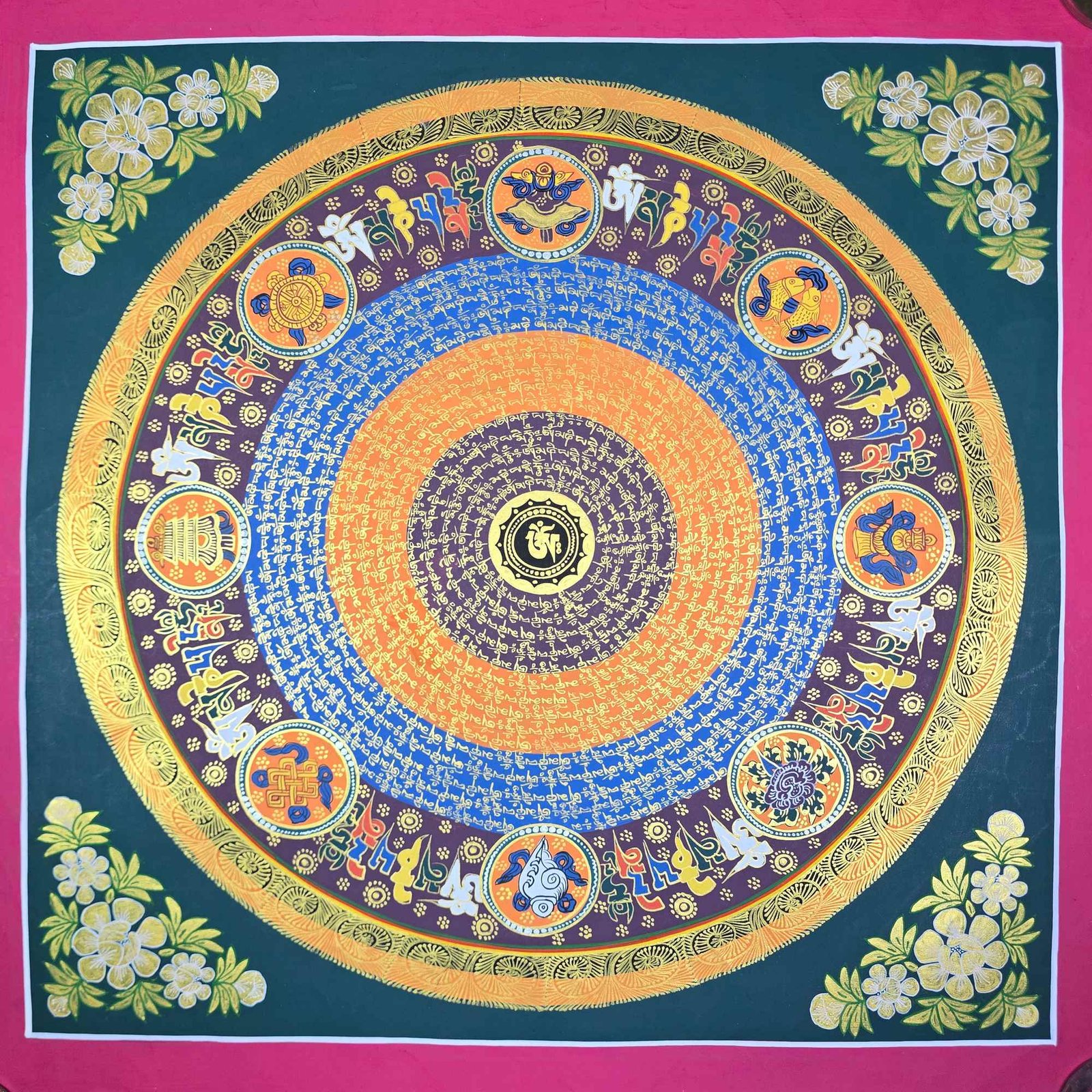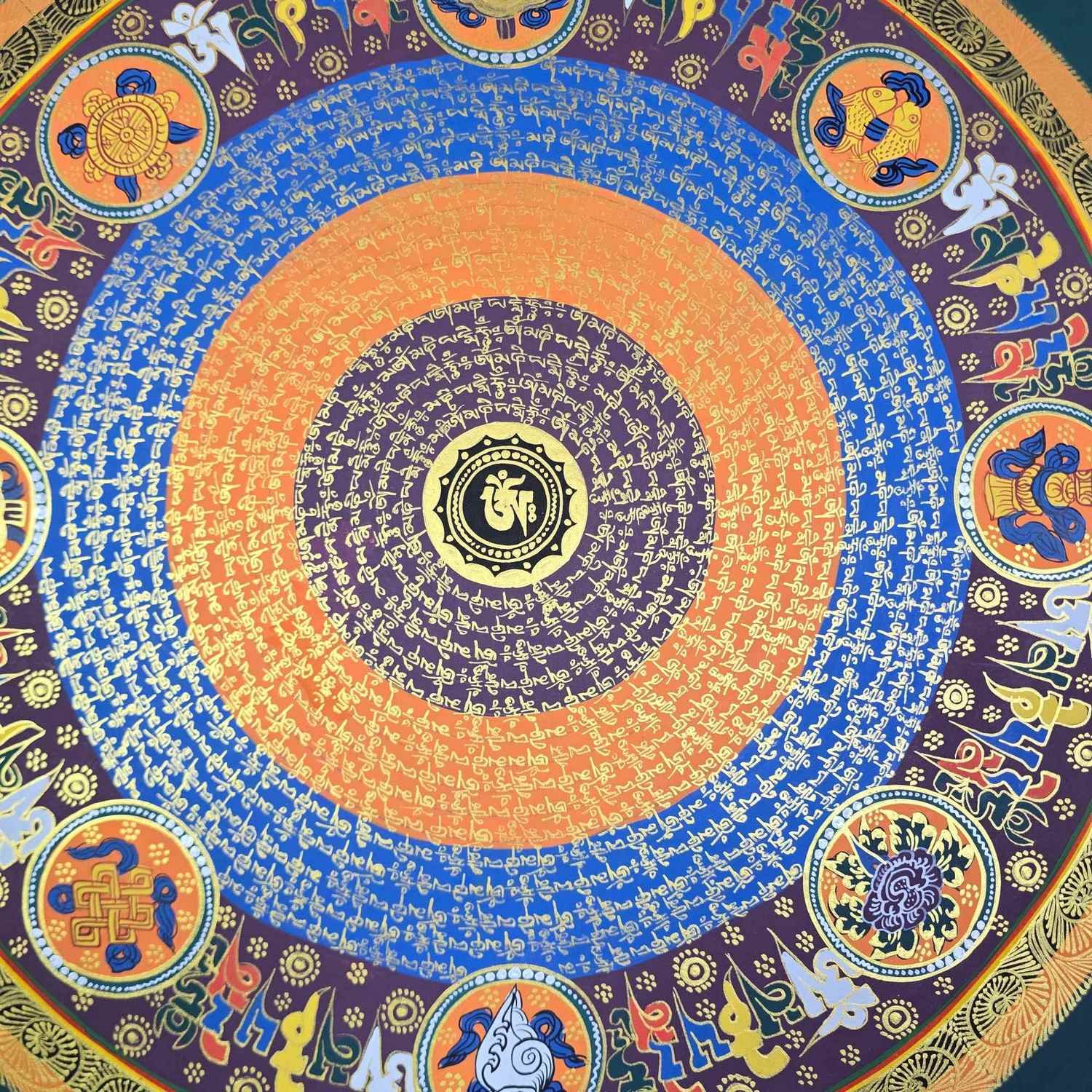 Hand Painted Tibetan Om Mani Padme Hum Mandala Thangka |