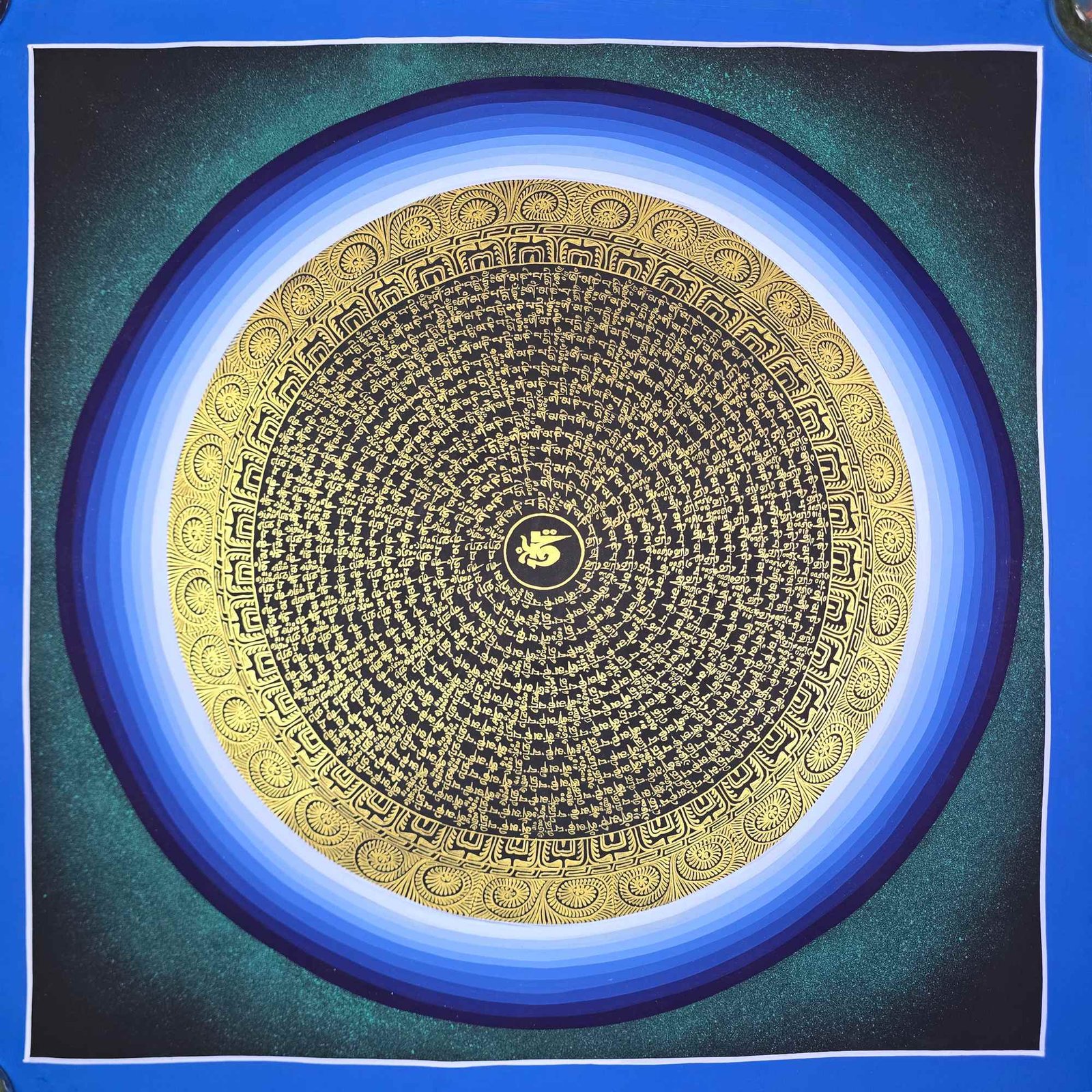 Hand Painted Tibetan Om Mani Padme Hum Mandala Thangka |