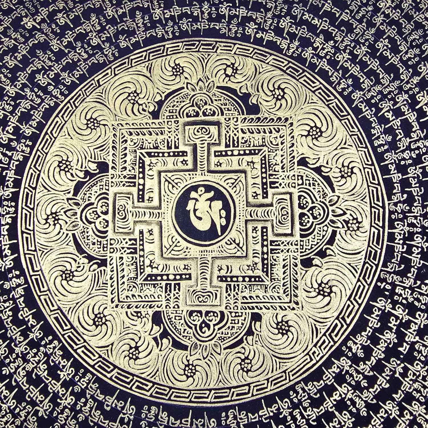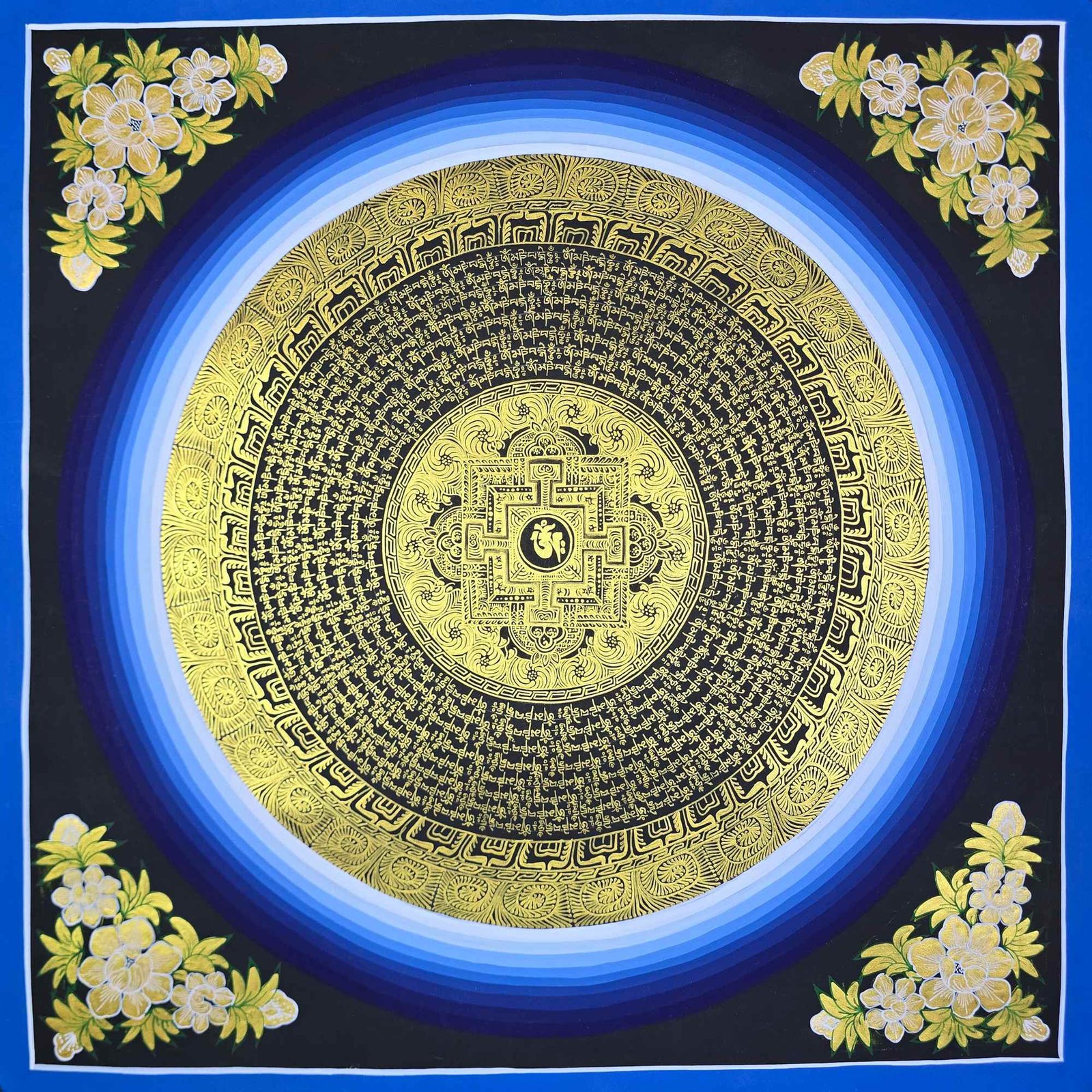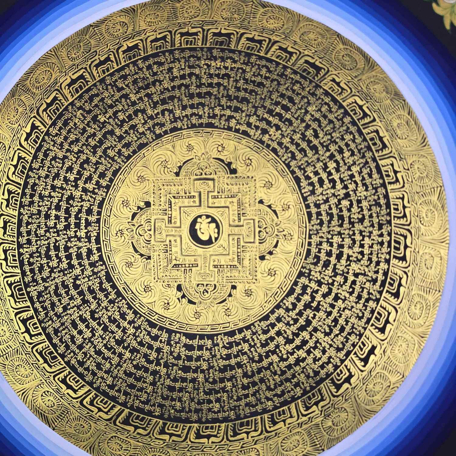 Hand Painted Tibetan Om Mani Padme Hum Mandala Thangka |