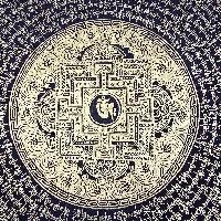 "...external ritual and internal sadhana form an indistinguishable whole, and this unity finds its most pregnant expression in the form of the mandala, the sacred enclosure consisting of concentric squares and circles drawn on the ground and representing that adamant plane of being on which the aspirant to Buddha hood wishes to establish himself. The unfolding of the tantric ritual depends on the mandala; and where a material mandala is not employed, the adept proceeds to construct one mentally in the course of his meditation."