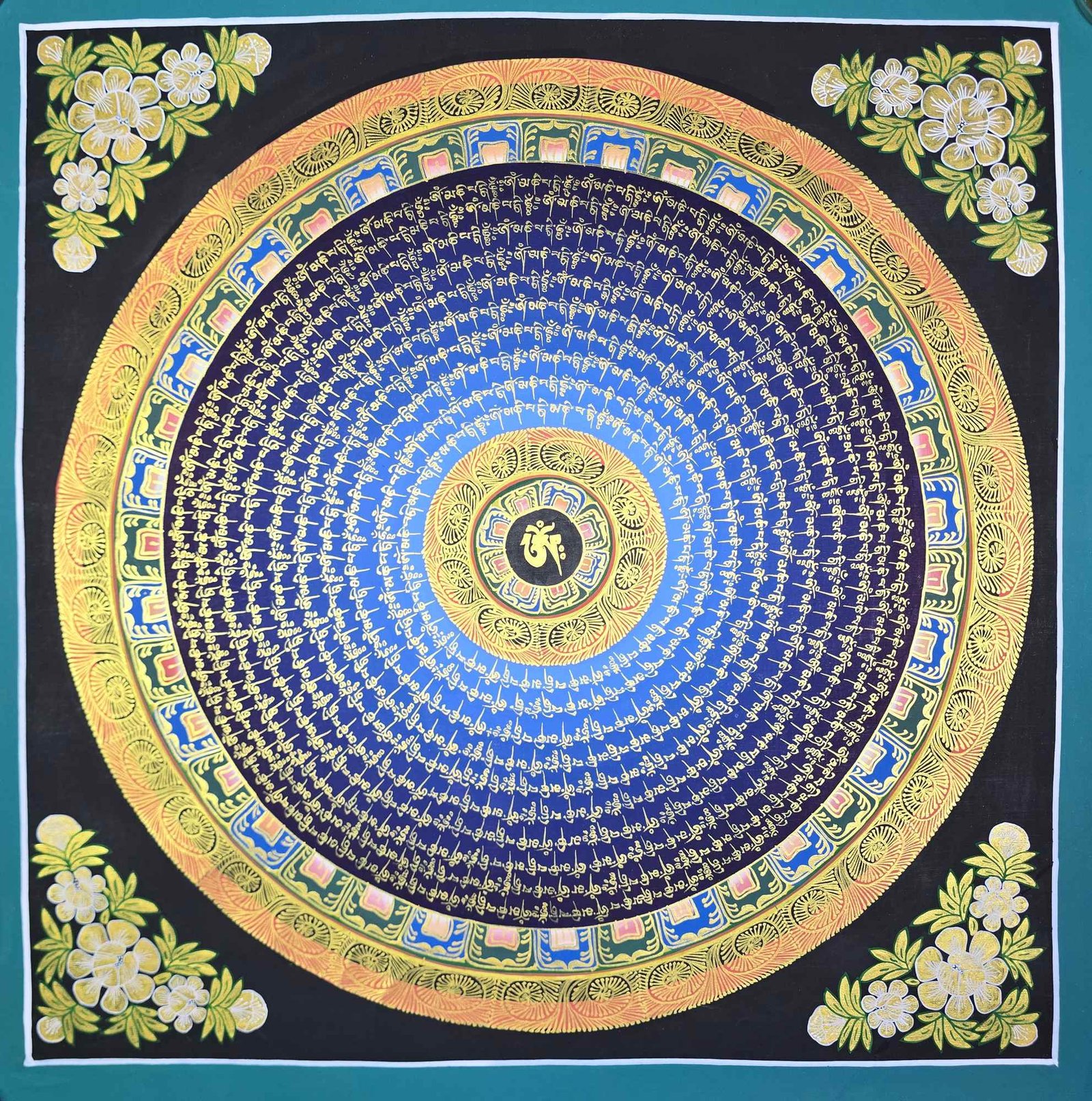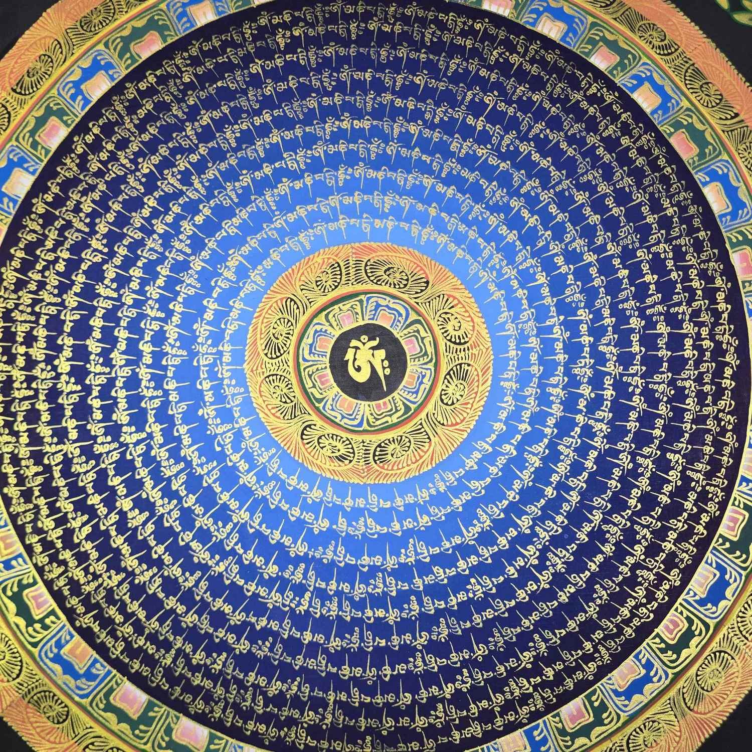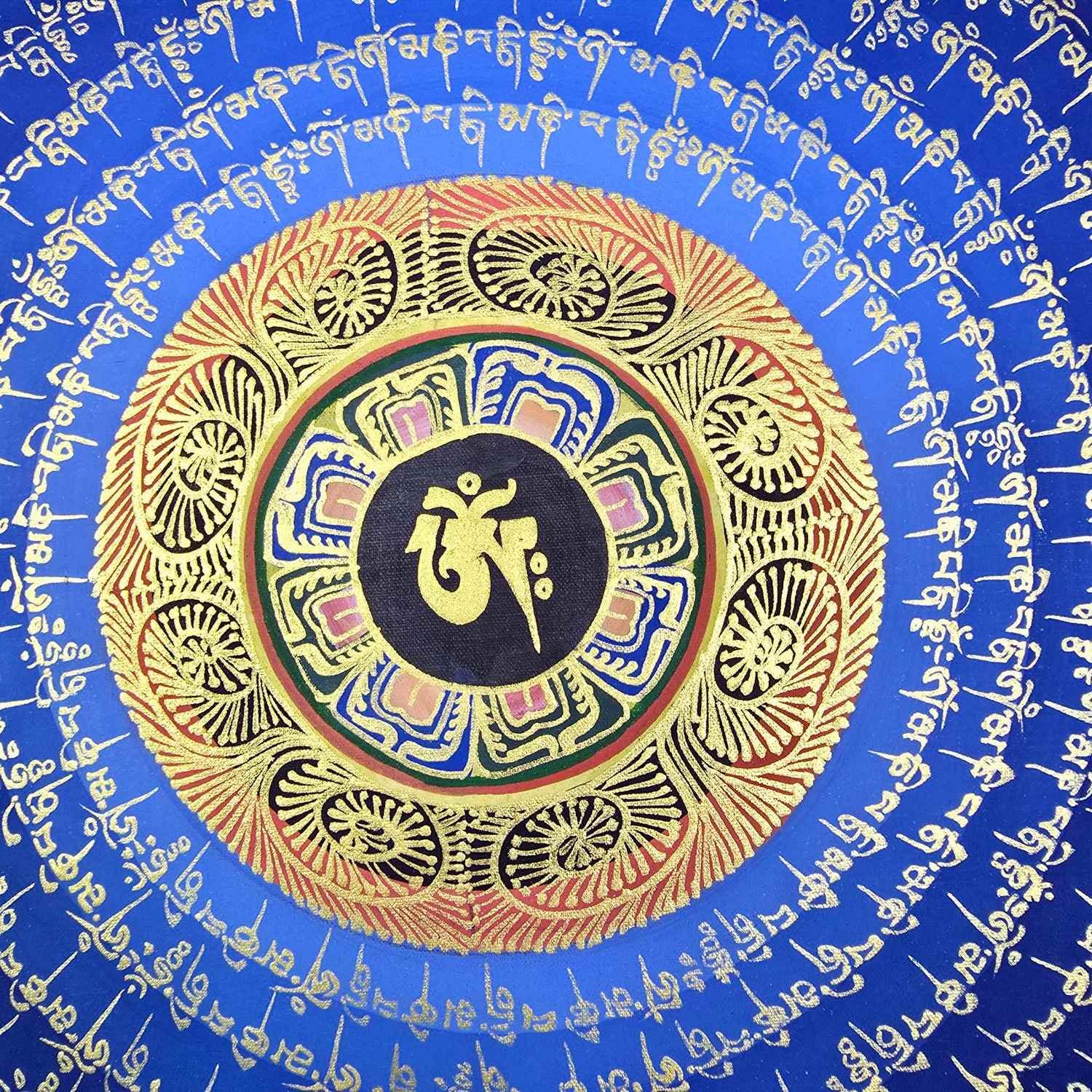 Hand Painted Tibetan Om Mani Padme Hum Mandala Thangka |