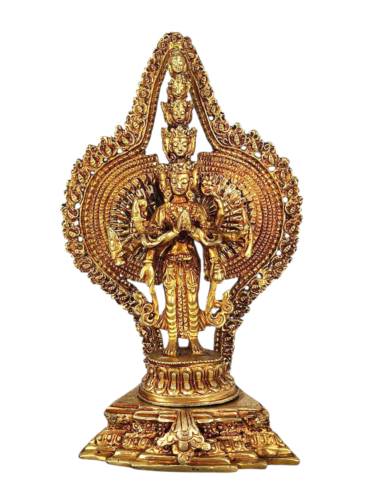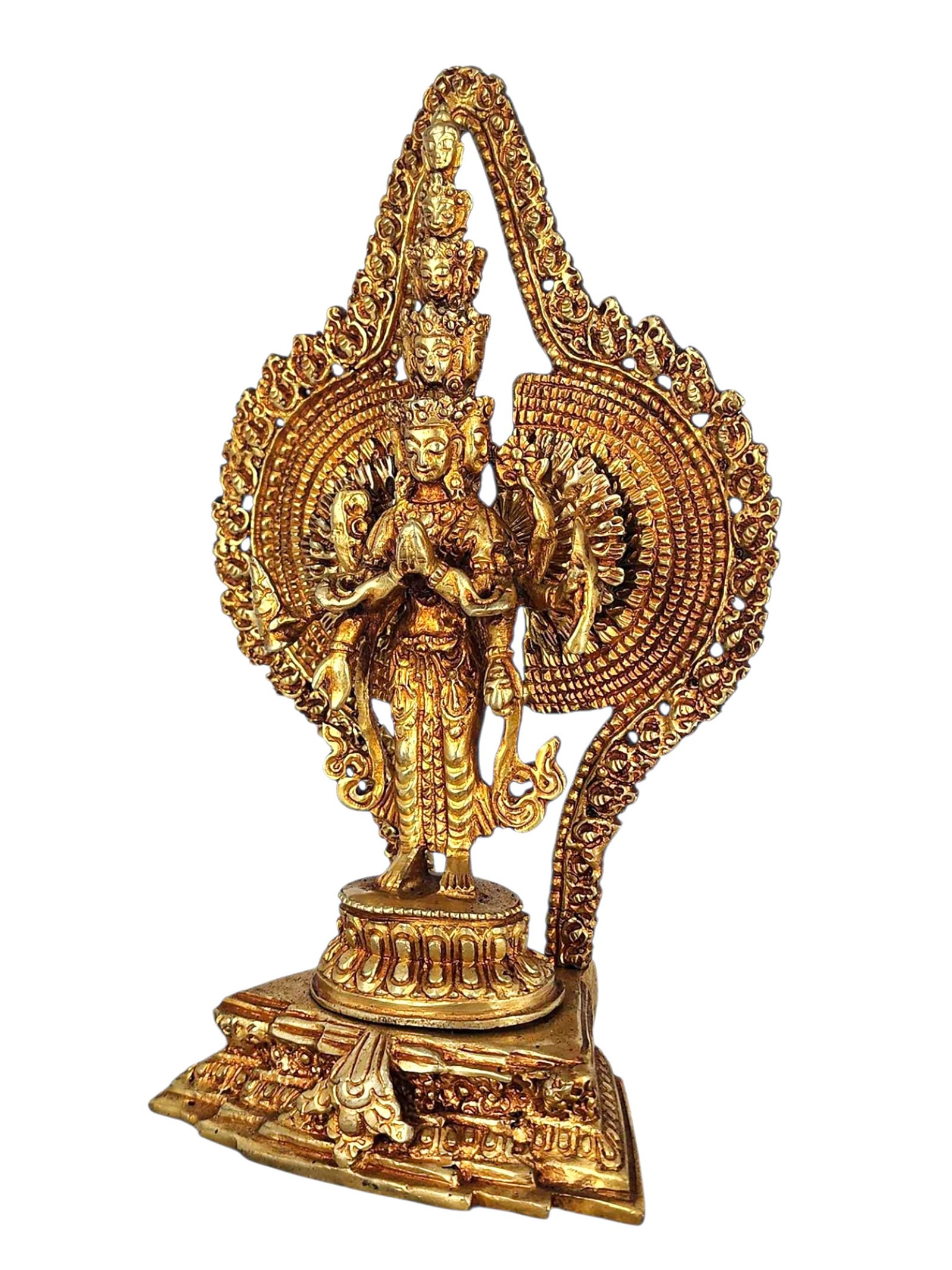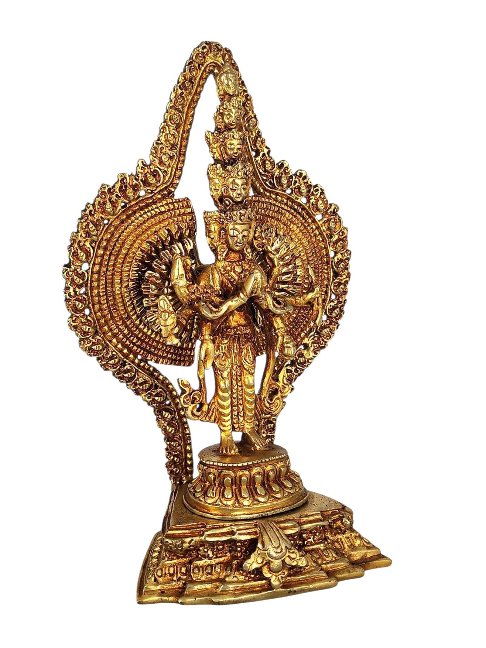 Statue of 1000 Arms Lokeshvara, Sahasrabhuja Avalokitesvara - full Gold Plated, |