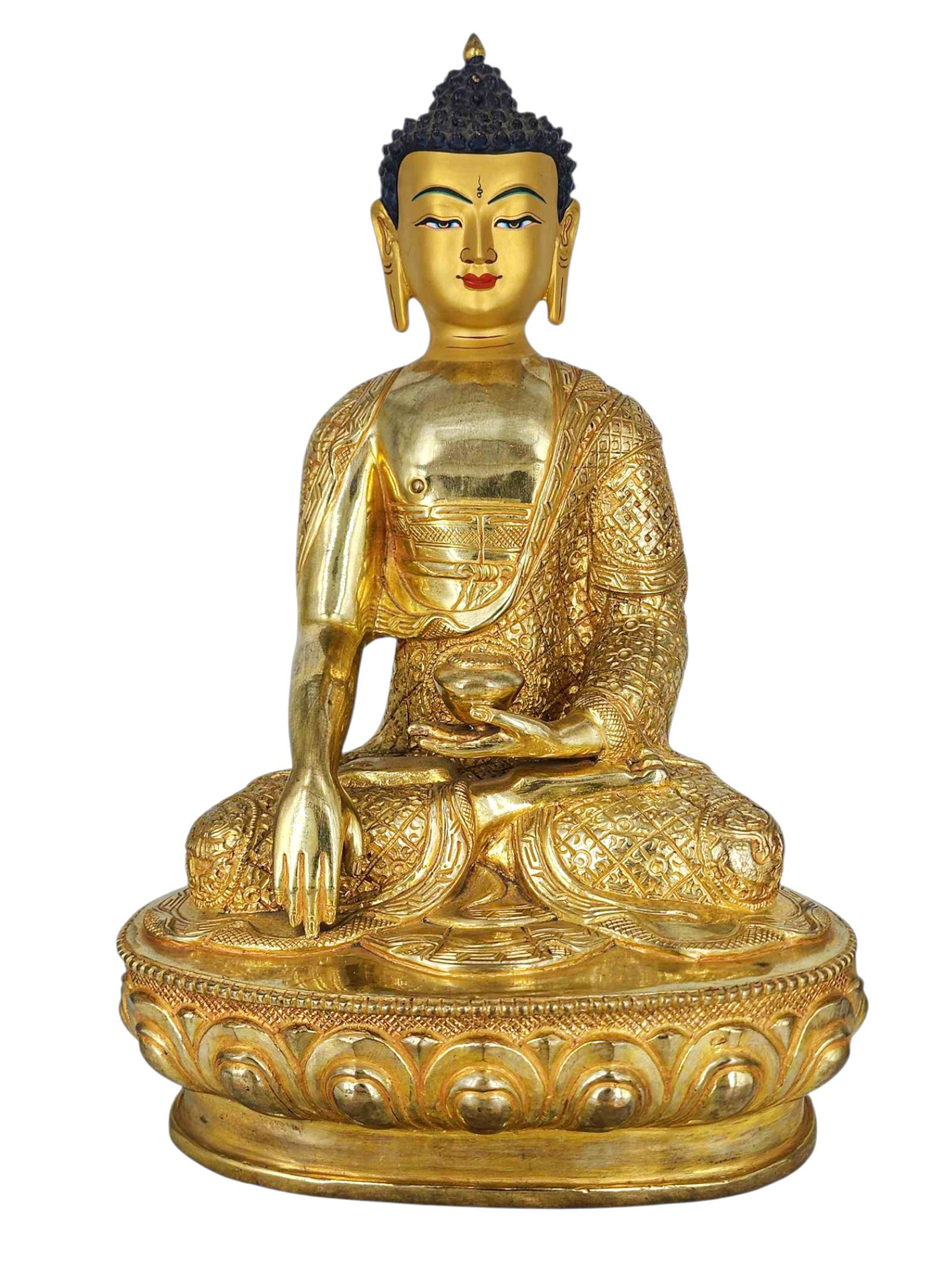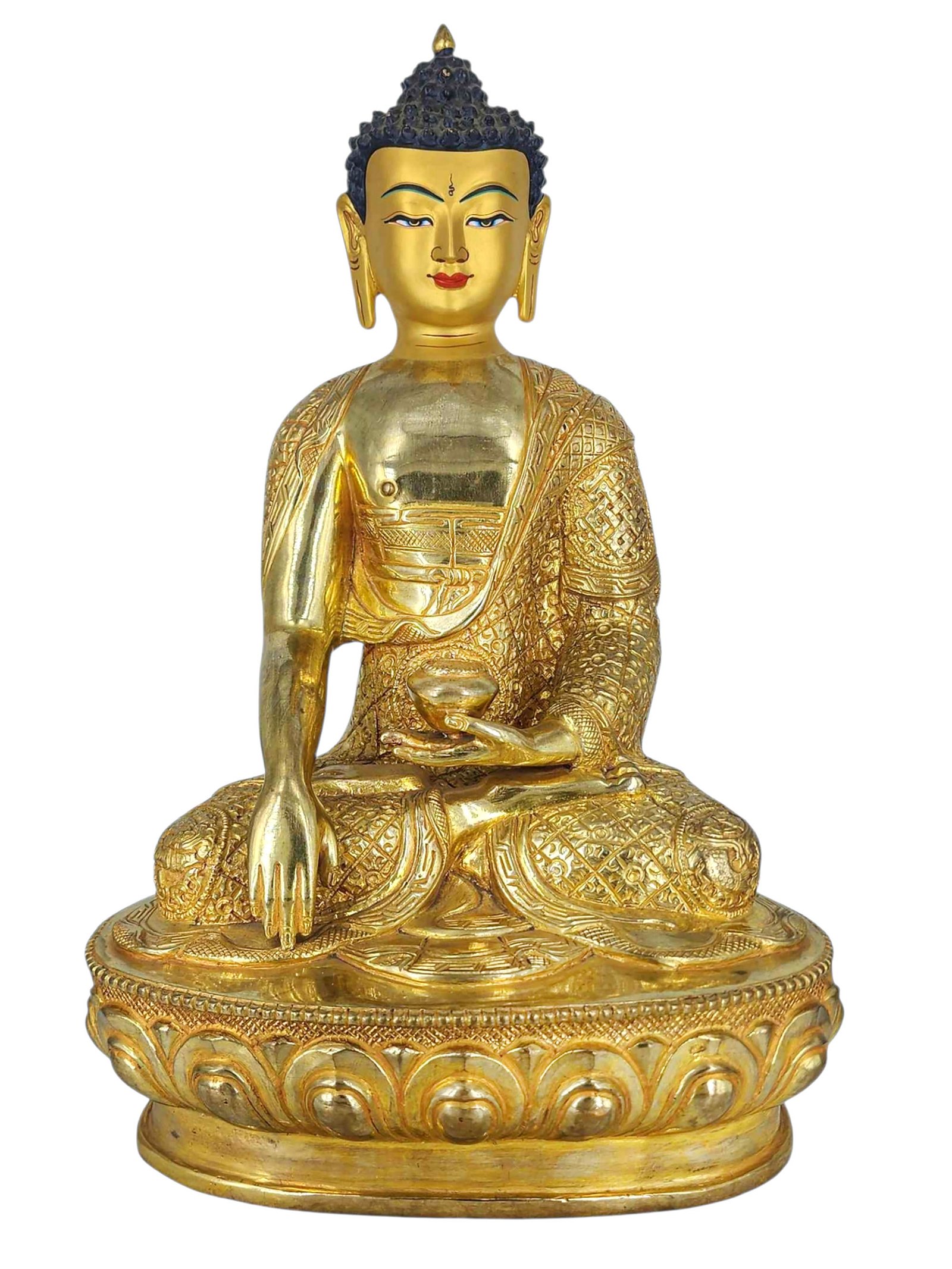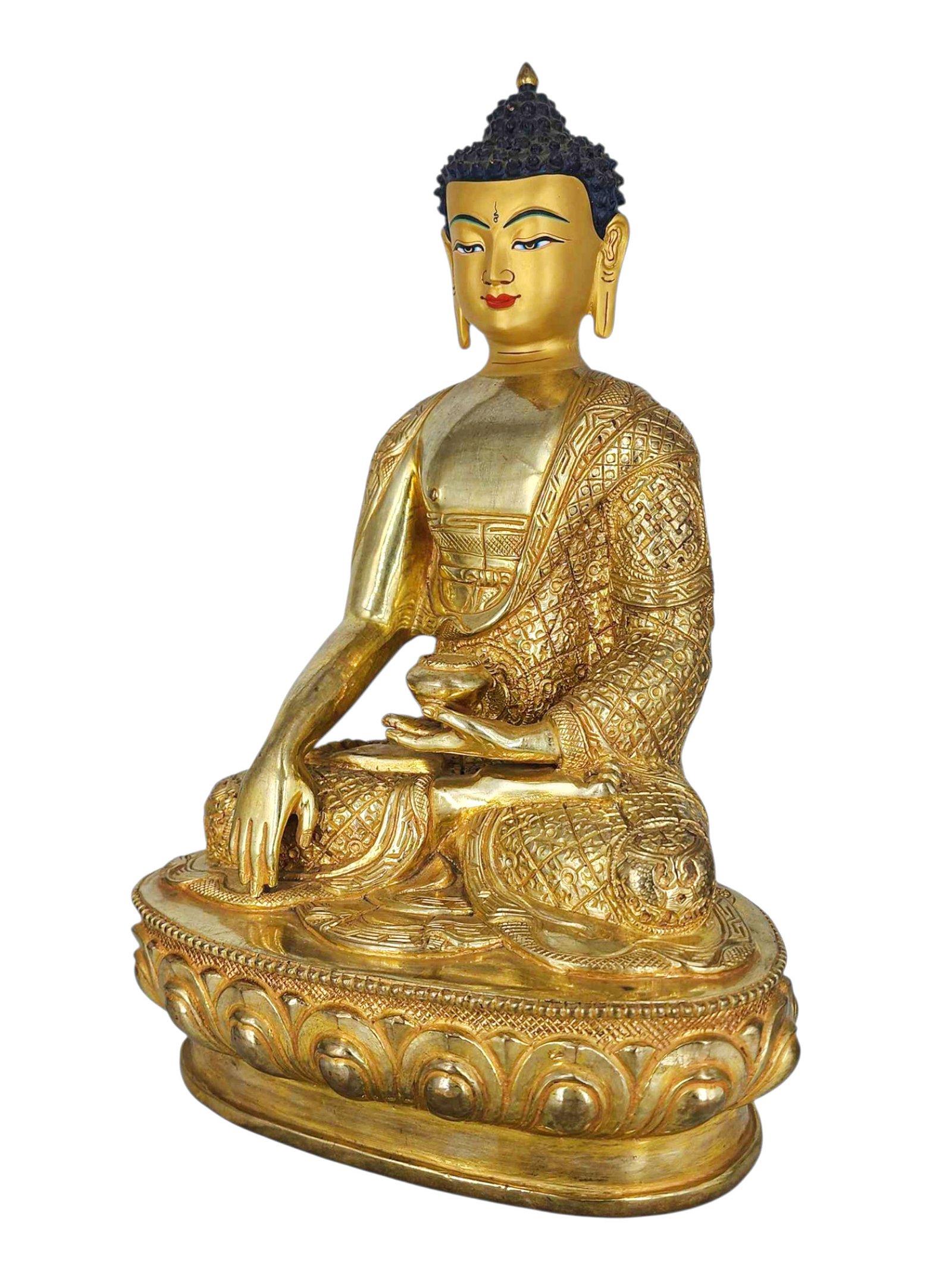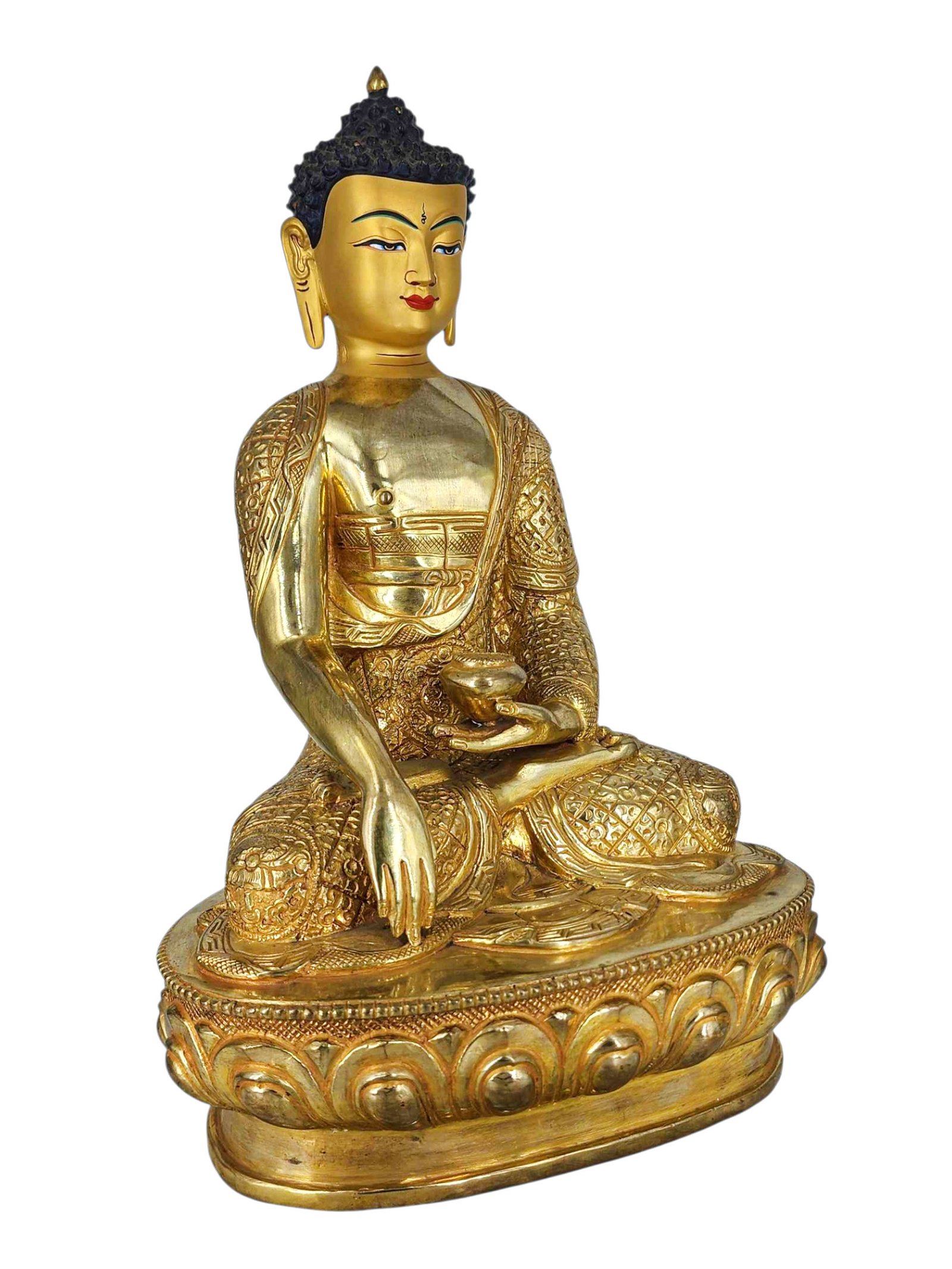 , Buddhist Handmade Statue, Gold Plated, Face Painted |