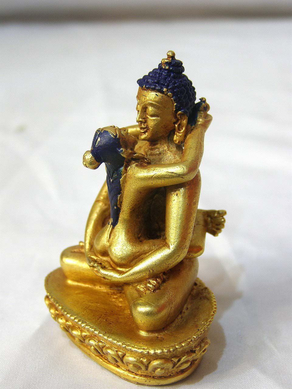 This Samantabhadra has finished in a full gold Plated antique patina. The Antique finishing imparts a sense of age and character to the Samantabhadra, enhancing its overall appeal. In the Antique finishing process, after the Gold plating is applied, a carefully applied layer of varnish is added. This varnish not only contributes to the antique look but also serves as a protective barrier, ensuring the longevity of the gold plating. It helps to safeguard the gold layer but also prevents tarnishing for an extended period. Read More