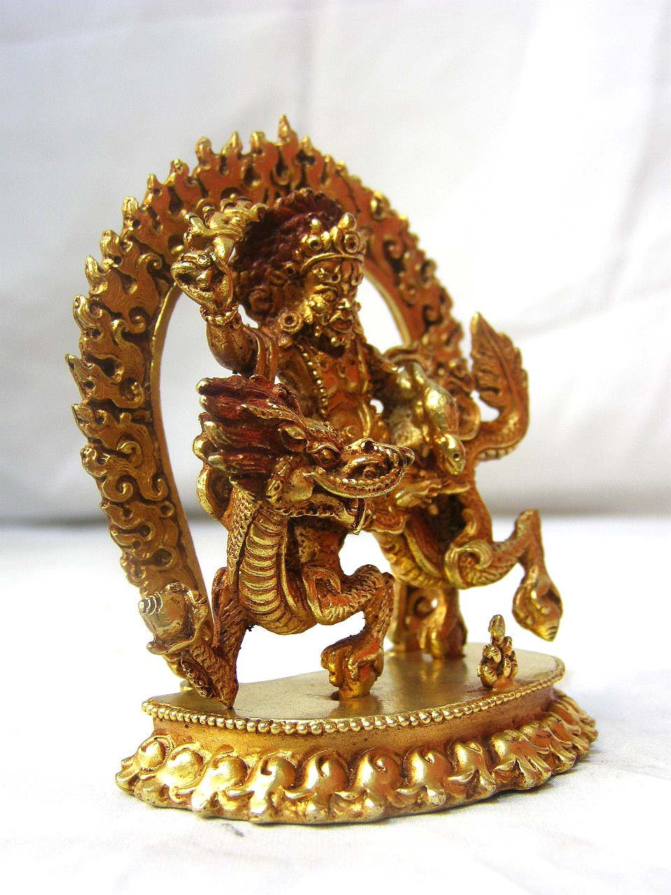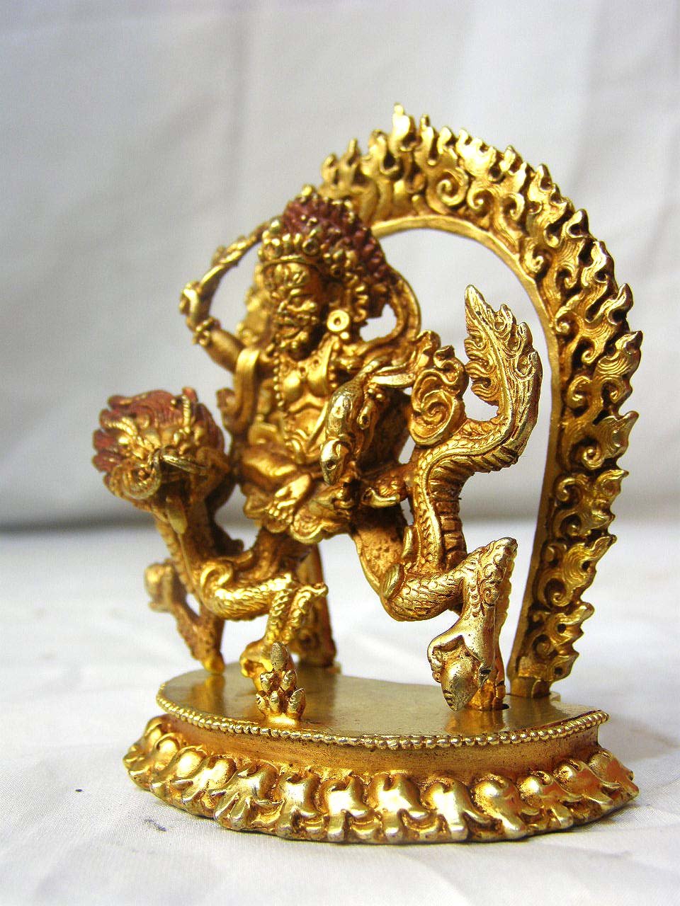 This White Jambhala has finished in a full gold Plated antique patina. The Antique finishing imparts a sense of age and character to the White Jambhala, enhancing its overall appeal. In the Antique finishing process, after the Gold plating is applied, a carefully applied layer of varnish is added. This varnish not only contributes to the antique look but also serves as a protective barrier, ensuring the longevity of the gold plating. It helps to safeguard the gold layer but also prevents tarnishing for an extended period. Read More